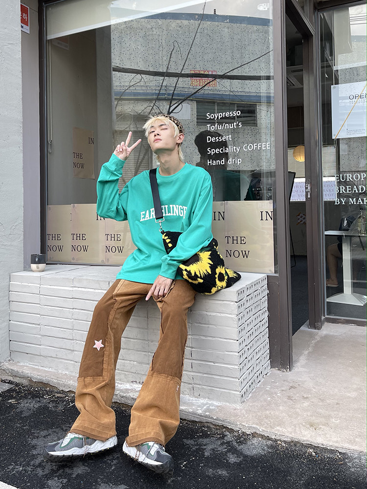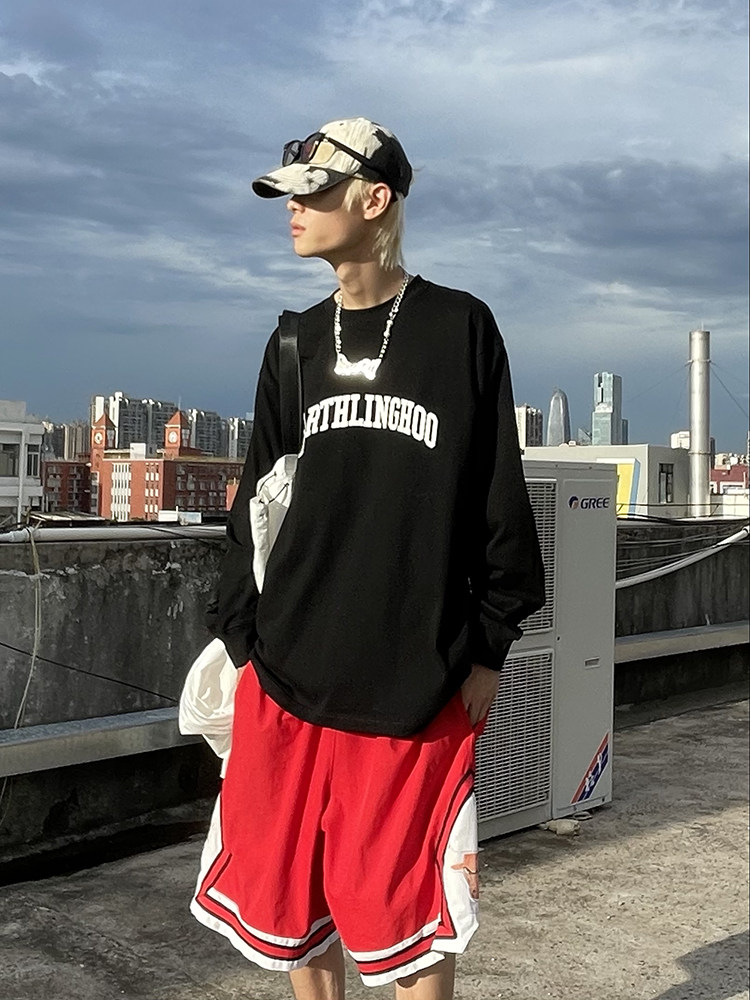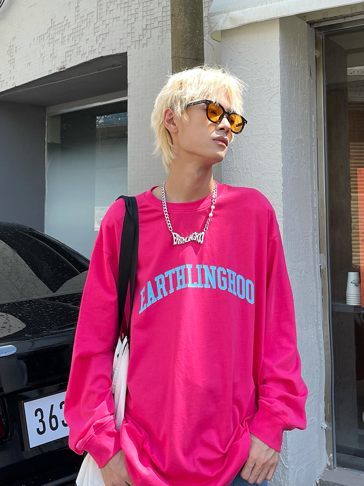 EAHO earthlinghoo all-match color street four seasons loose basic long-sleeved T-shirt men and women couples