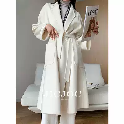 JICJOC 2021 autumn and winter new high-end water corrugated double-sided cashmere coat women's woolen jacket medium and long version