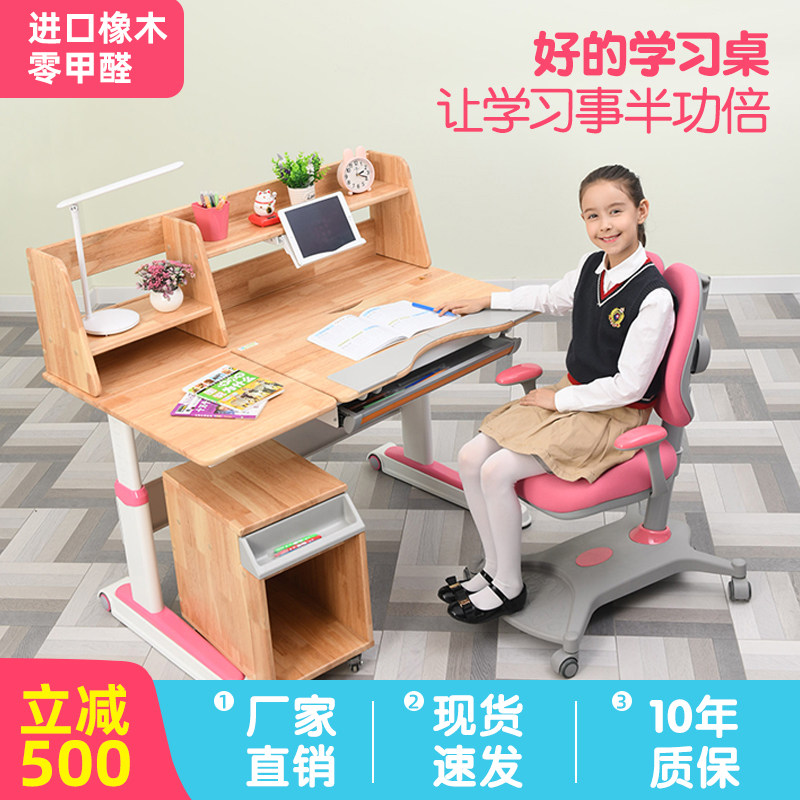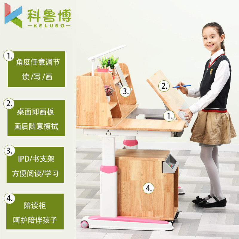 Kelubo children's study desk and chair multi-function can lift primary school desk and chair set children's solid wood study table