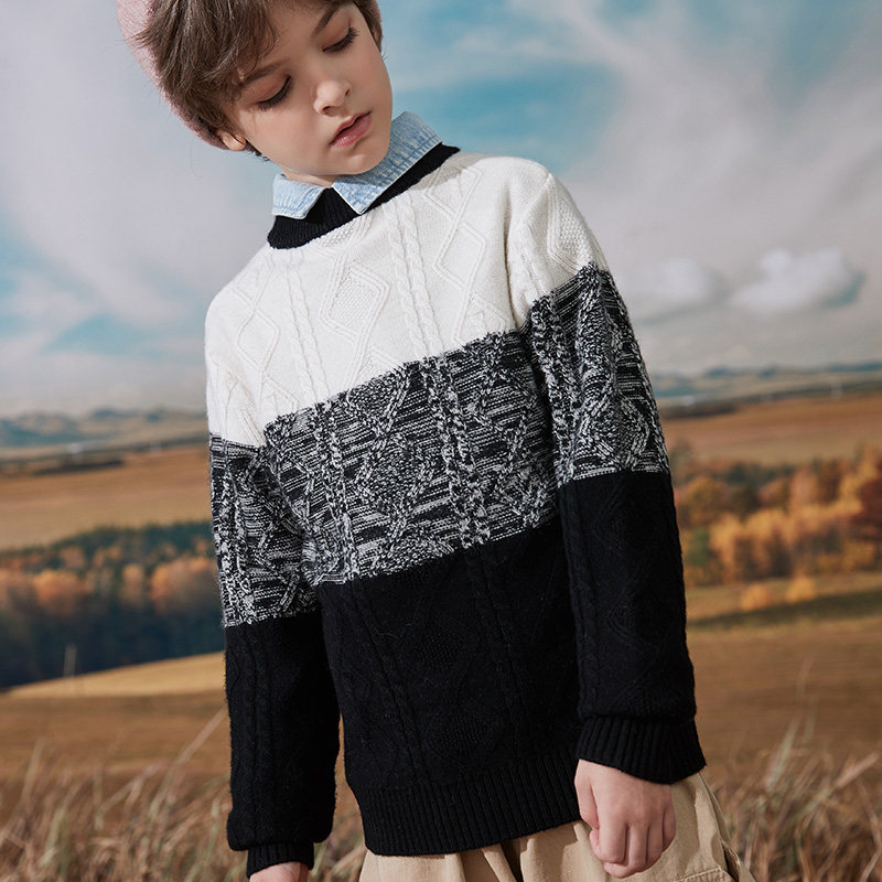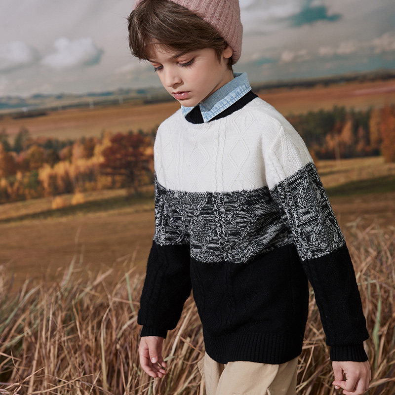 Boy wool sweatshirt 2021 autumn winter new children sweater knit cardiovert sweater bottom line clothes 100% pure wool-Taobao