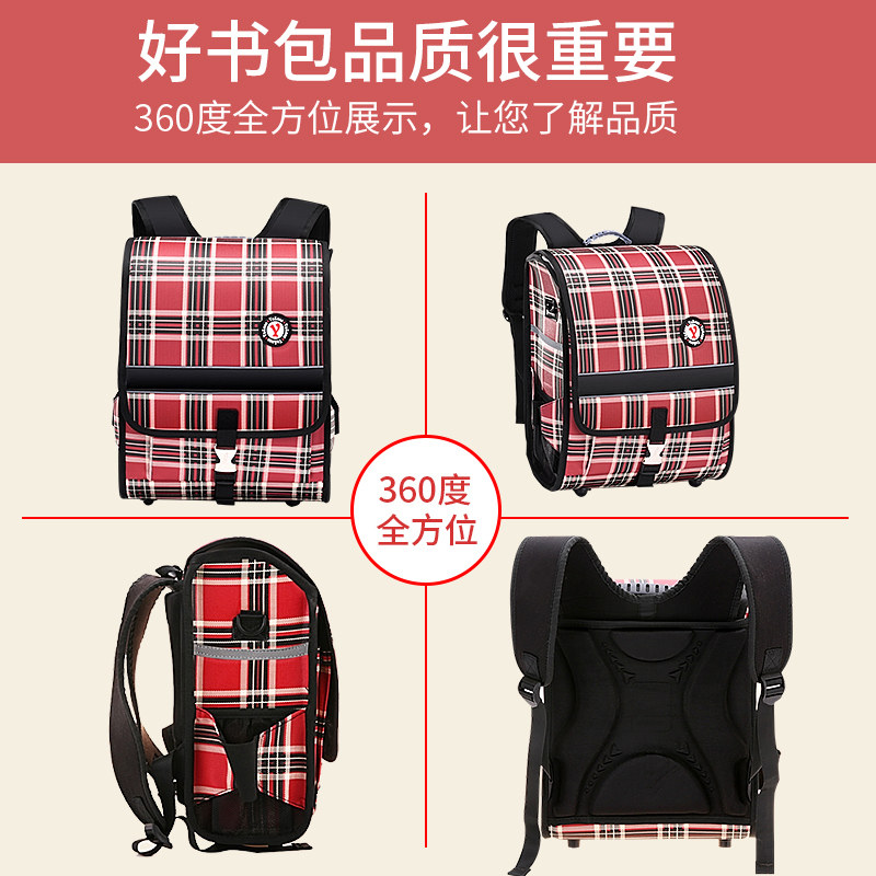Red plaid school bag-recommended for grade 1-3 grey checkered school bag-recommended for grade 1-3