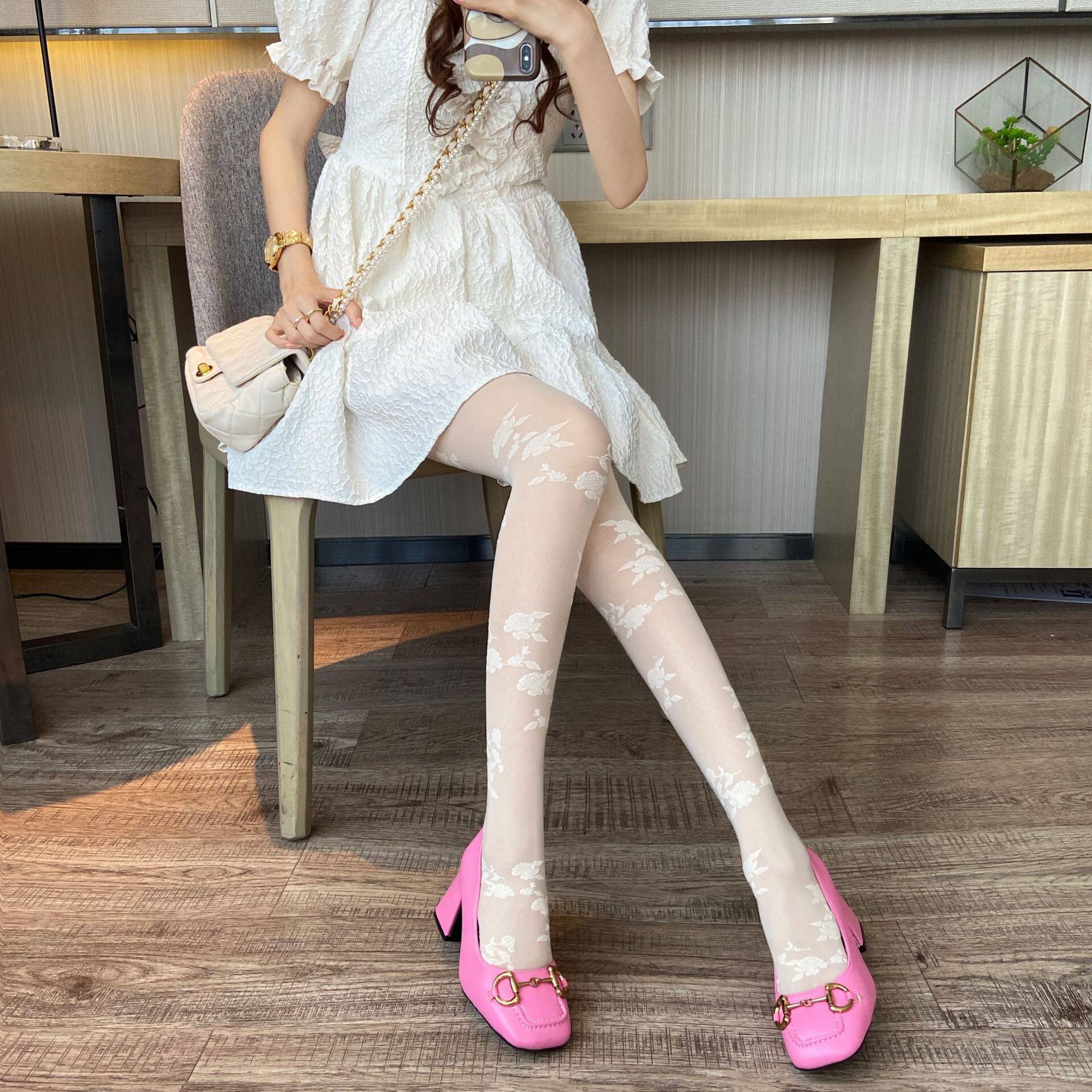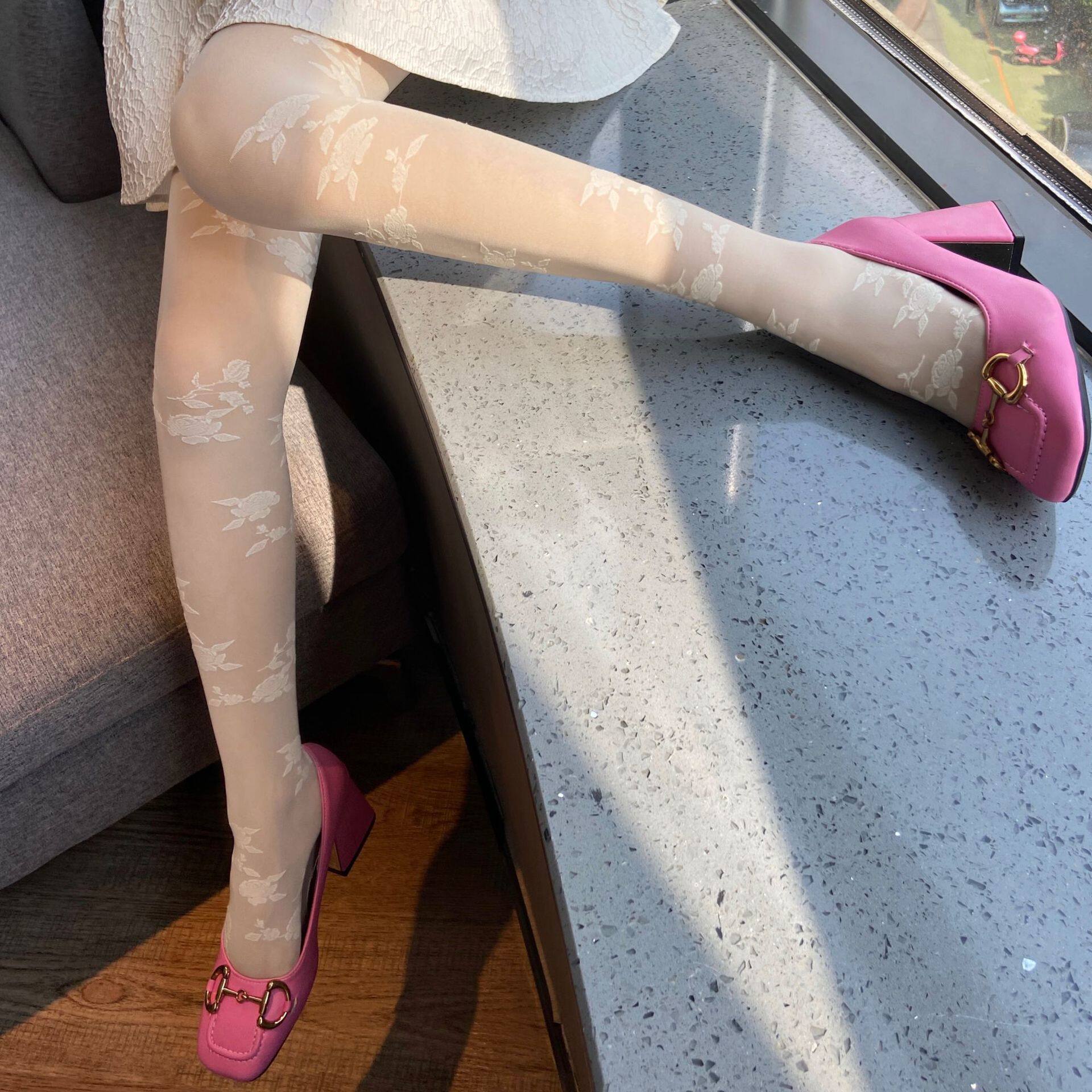 Spring and summer dark retro rose black silk hot silk pure desire to make a sock court French embroidered lace pantyhose female