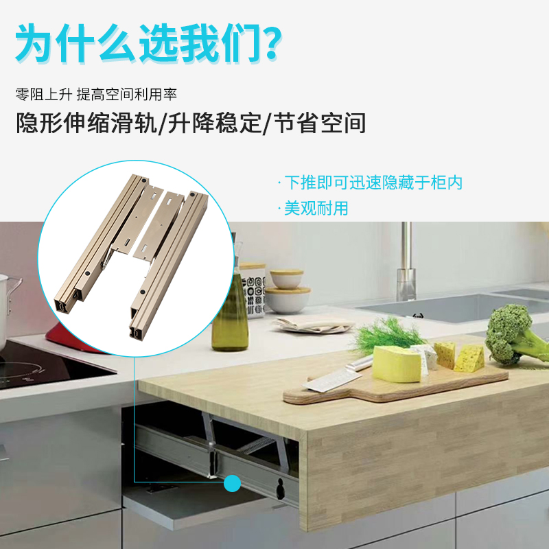 Multi-function rising stealth track aluminum alloy extension table draw desk table table guide rail hardware