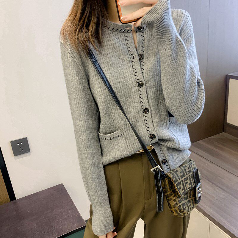 2022 Gothic new high-end women's clothing special cabinet spring loose wool short jacket knit cardiovert sweater