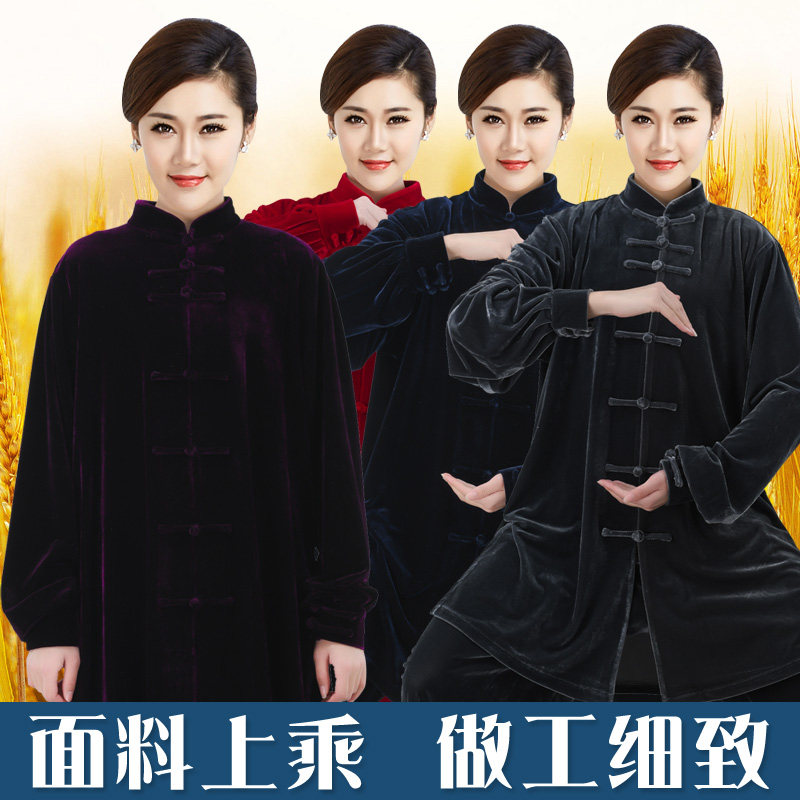 New 2023 autumn and winter mid - long gold velvet Tai ji - suit morning - practice tai chi boxing suit