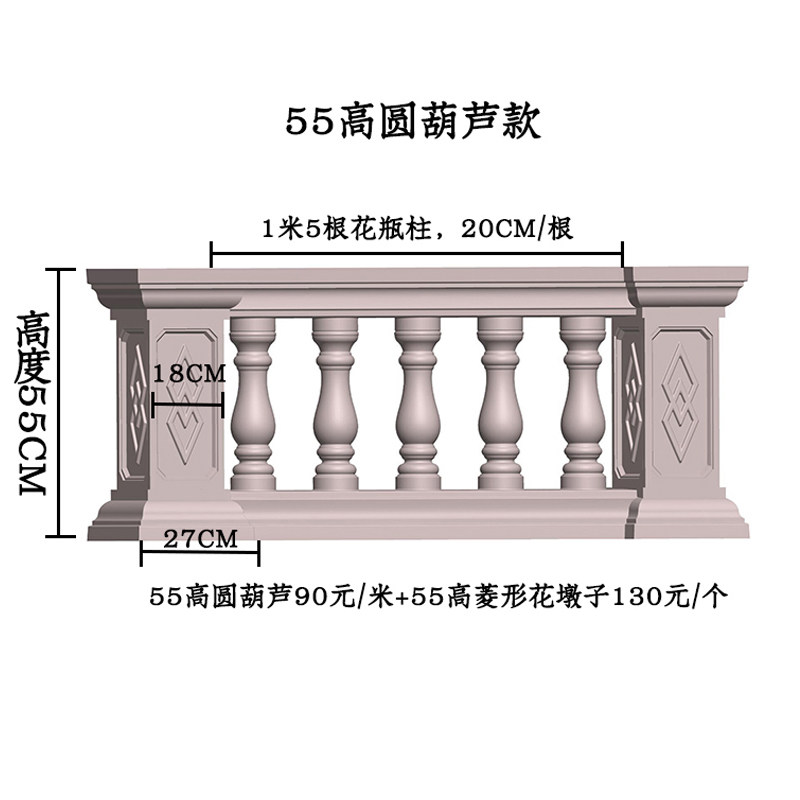 Balcony Railing Fence Fencing Mold Plastic Vase Column Guardrails Villa Yard model Cement Products Architectural Templates