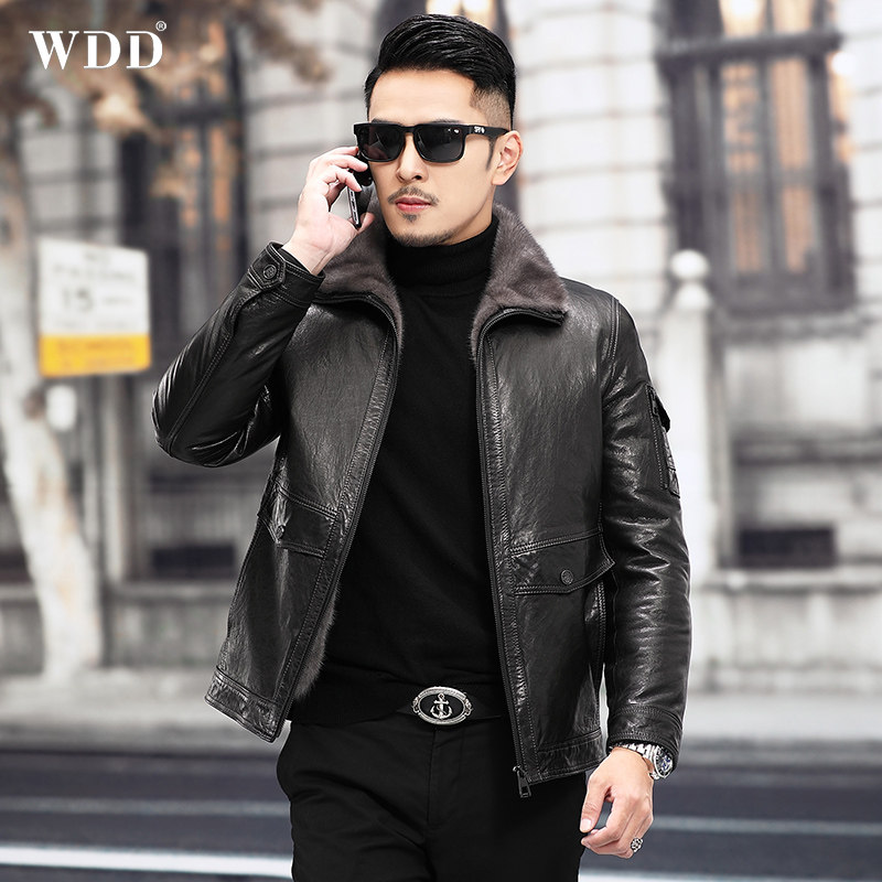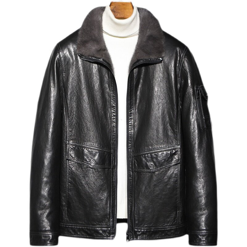 Mink fur coat men's leather leather clothing whole mink mink liner Mountain Sheep leather jacket short Hainen fur integrated jacket