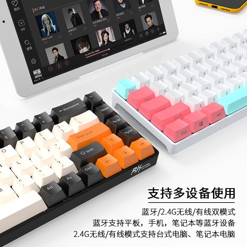 RK855 mechanical keyboard wireless bluetooth wired three-mode MAC mobile phone customized blue-black black tea plug-in shaft portable