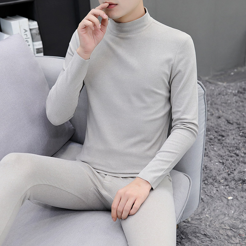 Men's autumn and winter half turtleneck German velvet heating pants men's double-sided brushed seamless autumn clothes sanitary pants bottoming shirt
