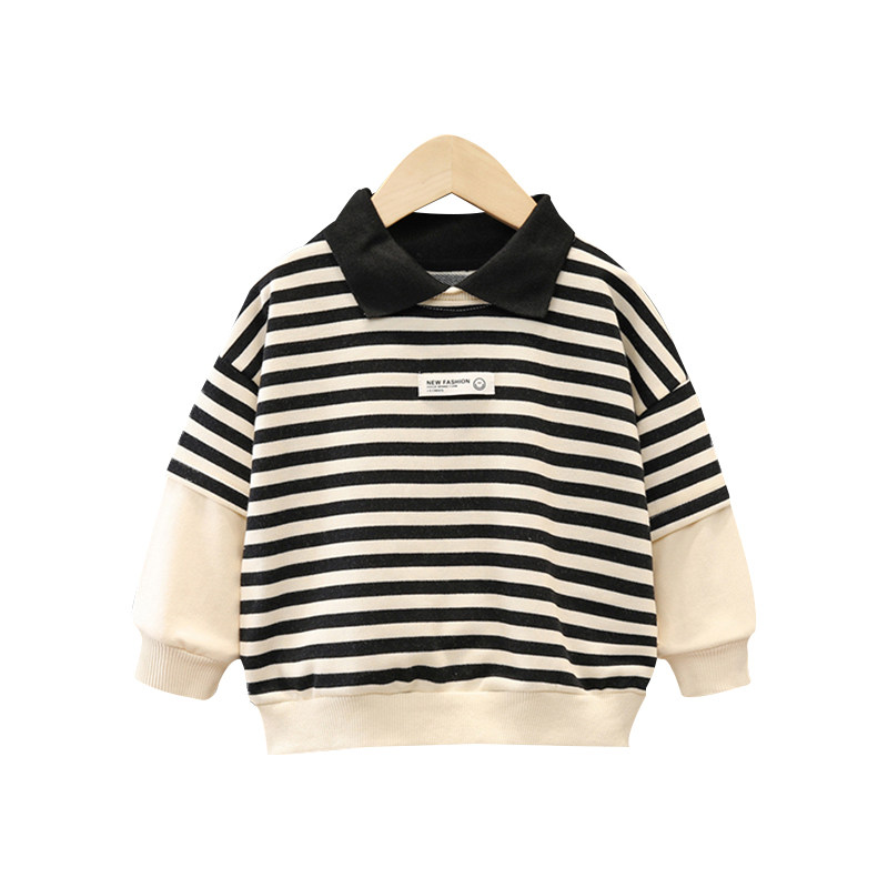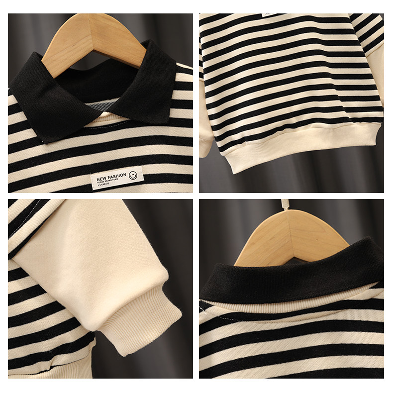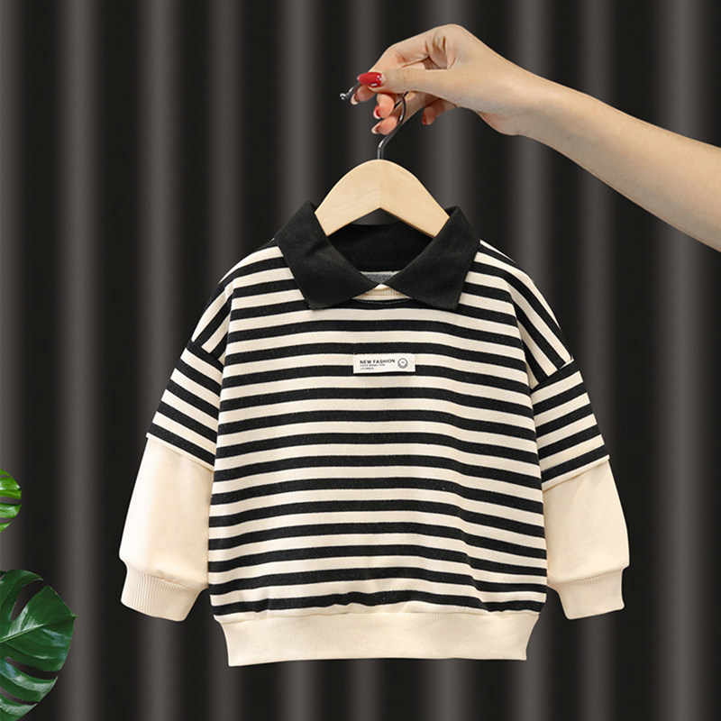 Boy Sweatshirt Spring Autumn Children's Clothing Stripe POLO Collar Korean Version Blouse 2022 New Baby Long Sleeve Autumn Clothing Tide