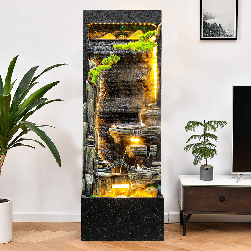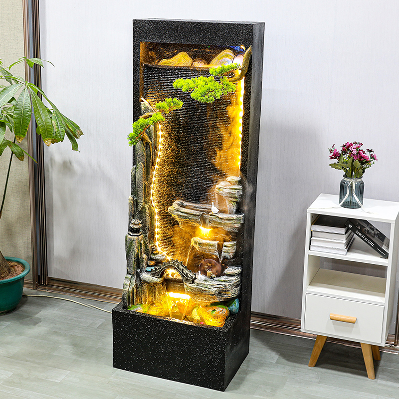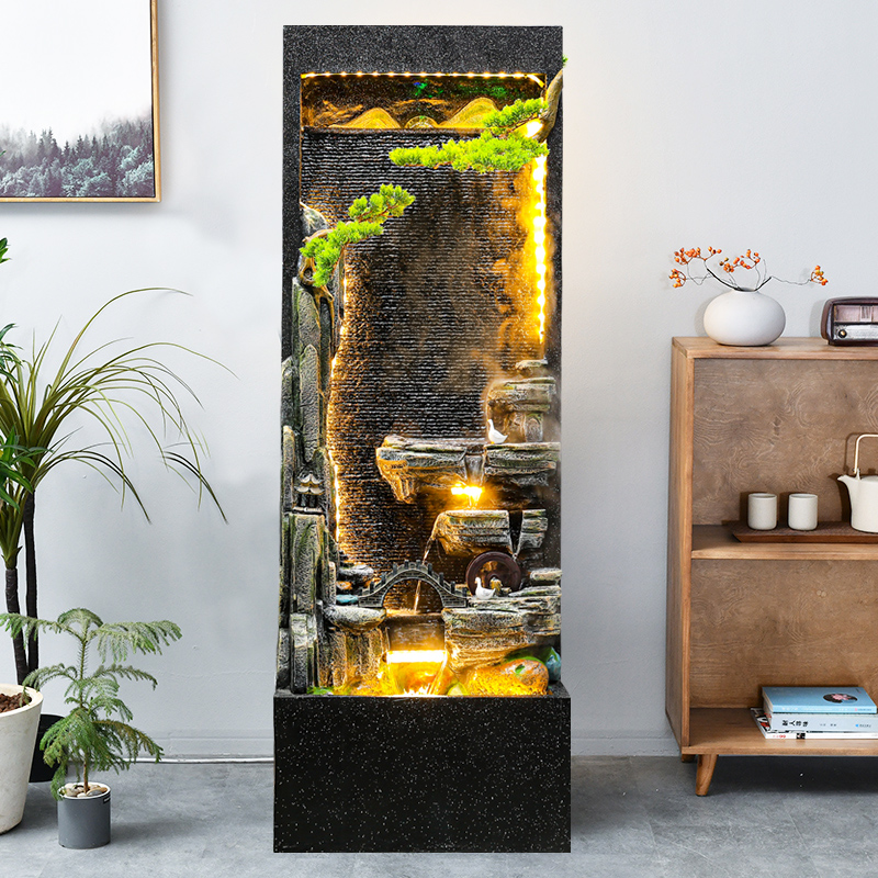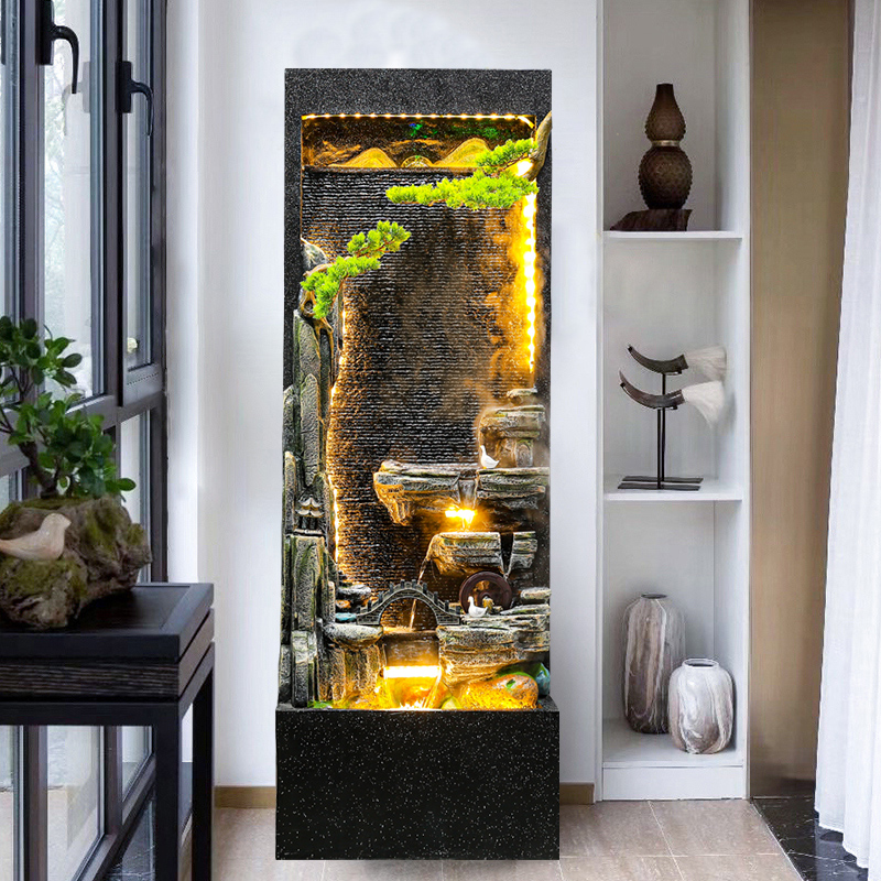 Flowing water fountain ornaments landed in the office living room entrance water curtain wall Zhao Cai fish pond water view TV cabinet next to the landscape