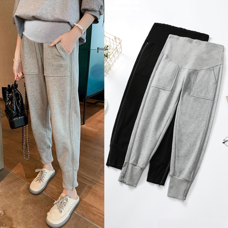 Pregnant women's trousers spring and autumn fashion outerwear trousers loose zipper bundle feet bottoming sports harem pants autumn and winter