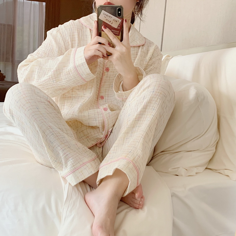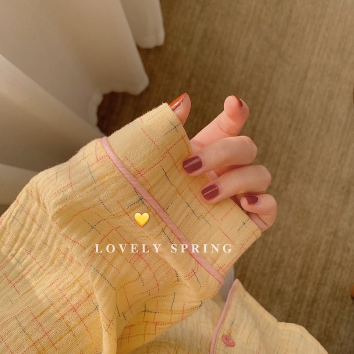A piece of pineapple ghee ~ chao good wearing Korean version sweet and beautiful plaid pure cotton pyjamas woman long sleeve home clothes two sets