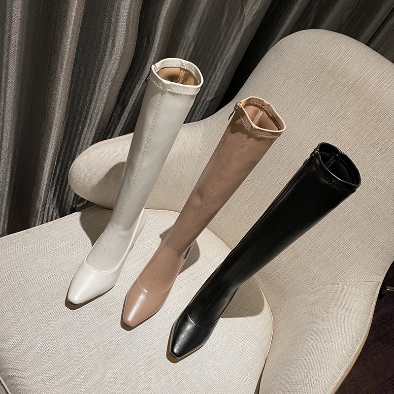 Long boots 2021 autumn and winter new style plus velvet elastic thin boots high boots but knee high heels for women