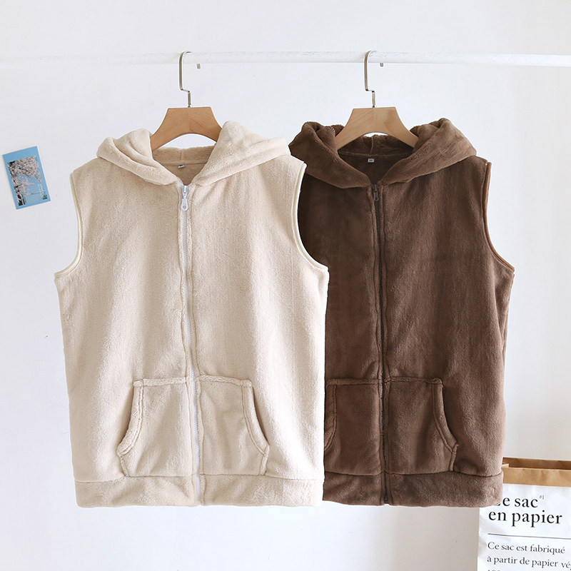 Autumn and winter Korean version of the short flannel vest women's single-piece top plus velvet thick coral fleece warm vest vest