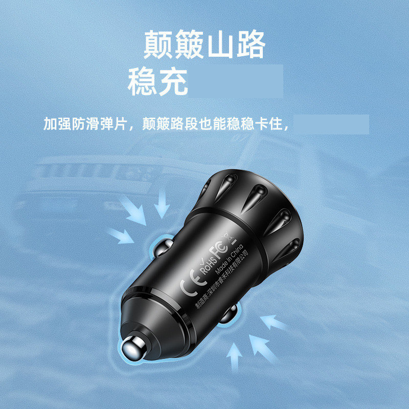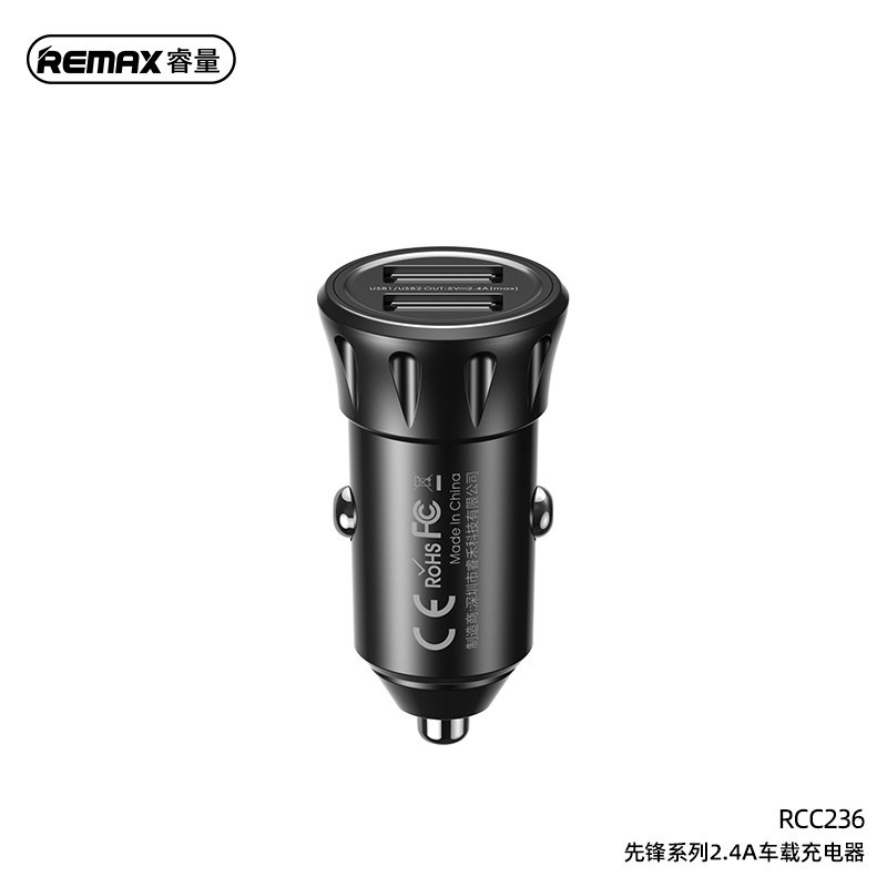 REMAX 2 4A Double-port USB on-board charger Double U Lighter Phone Car Charging Head Double-mouth Mini short quick charging cigarette lighter transfer USB wagon Recording instrument Navigation General 12V-24
