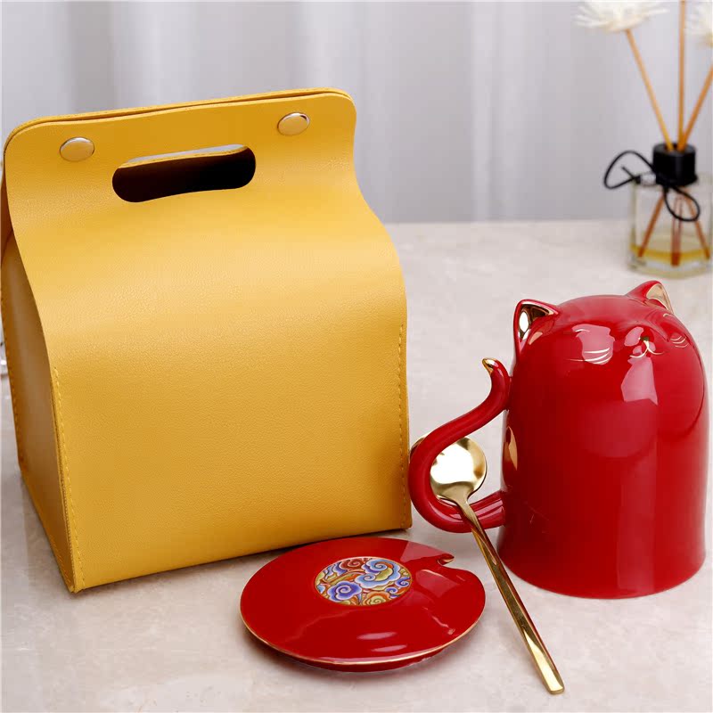 Creative Cute Cat Healing Mark Cup With Lid Spoon Ceramic Lovers Water Glass Kitty Cups Cute Wind Female Wind Coffee Cup