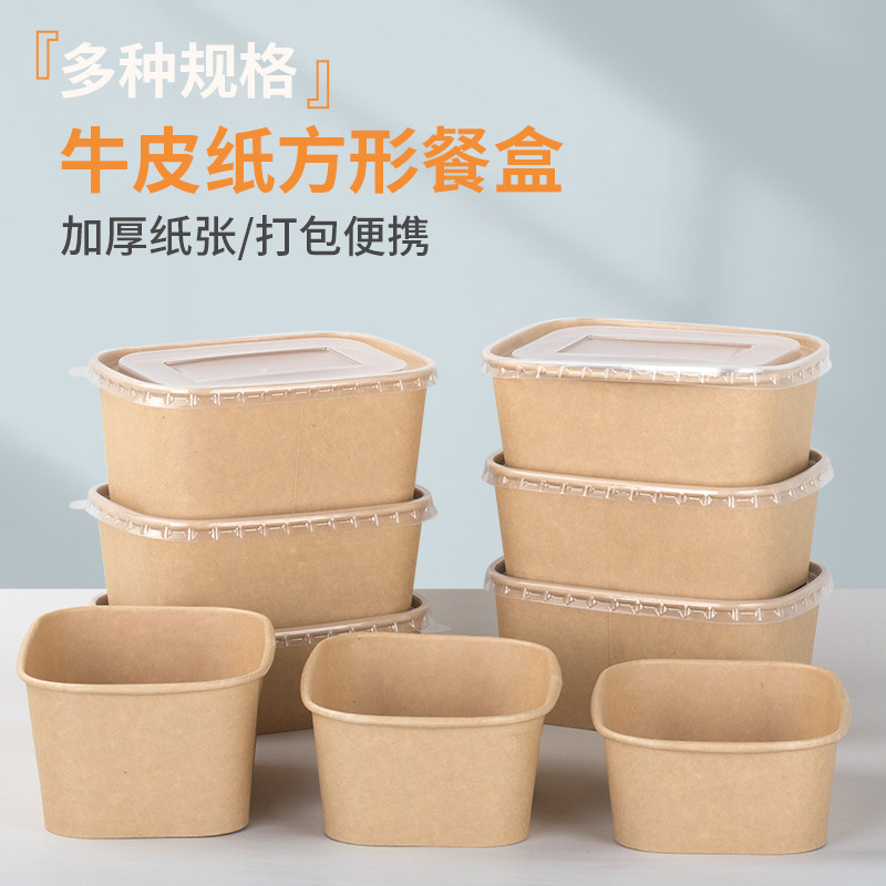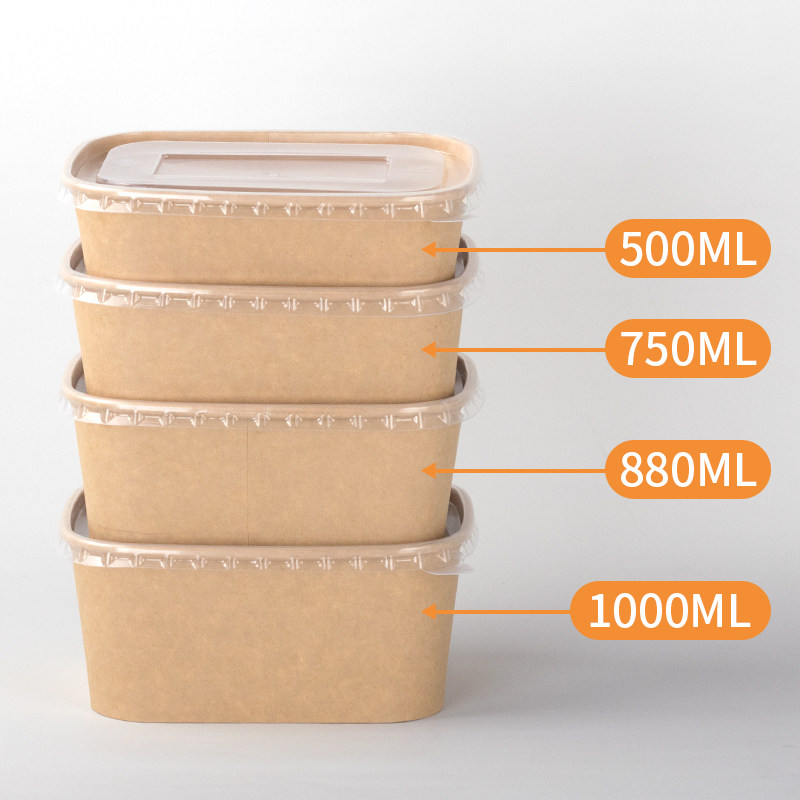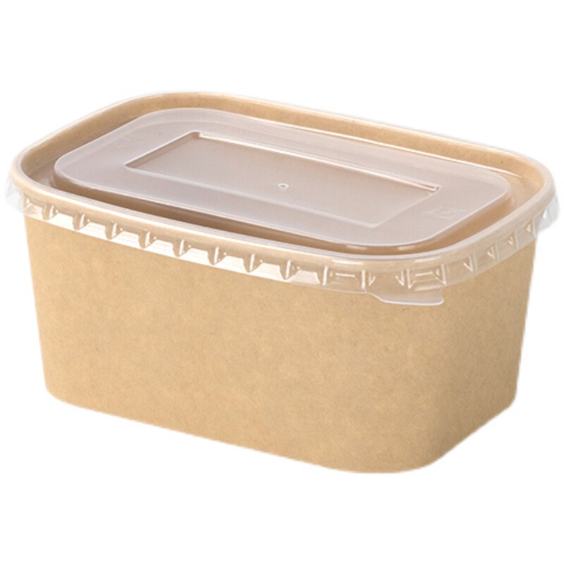 Rectangular Cardboard Box With Lid Disposable Takeaway Package Paper Meal Kit Environmentally Friendly Degradation Fruit Salad Case 1000ml