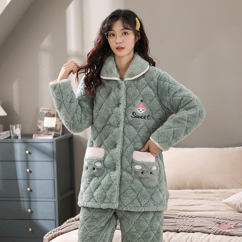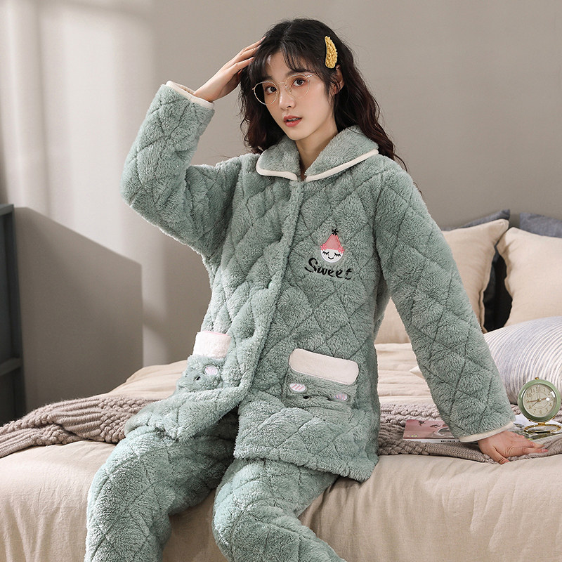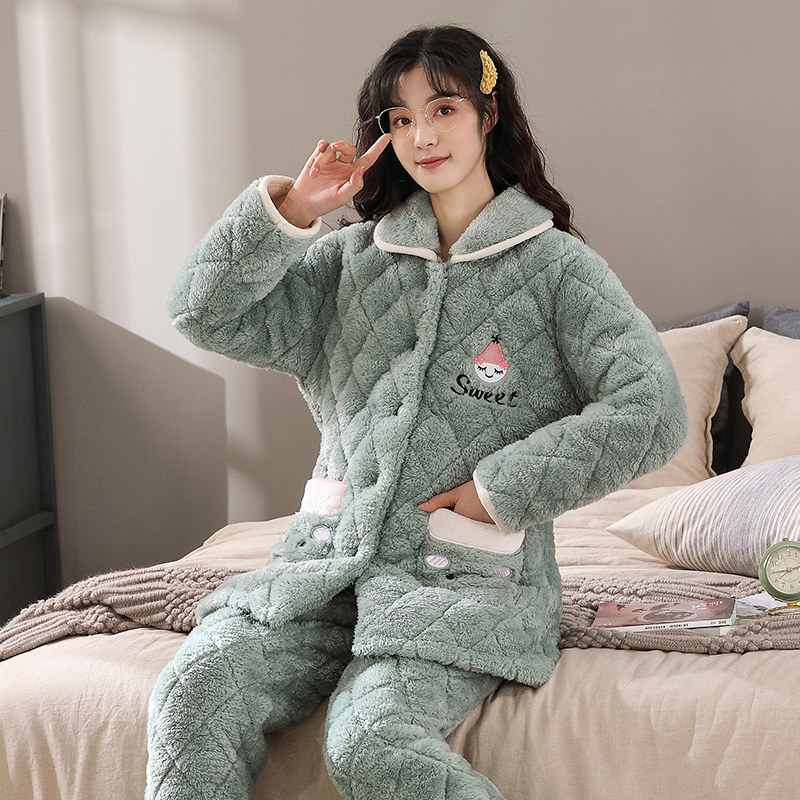 Pajamas Lady Autumn Winter Coral Flannel flannel jacket Cotton padded jacket Three layers thickened Garnapped warm Home Clothing Winter
