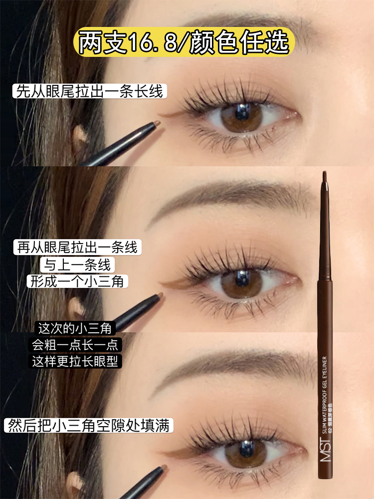 Jiaqi recommends ultra-fine eyeliner gel pen for women, waterproof, non-smudged, long-lasting, pencil-style hard tip, very fine brown beginner - Taobao