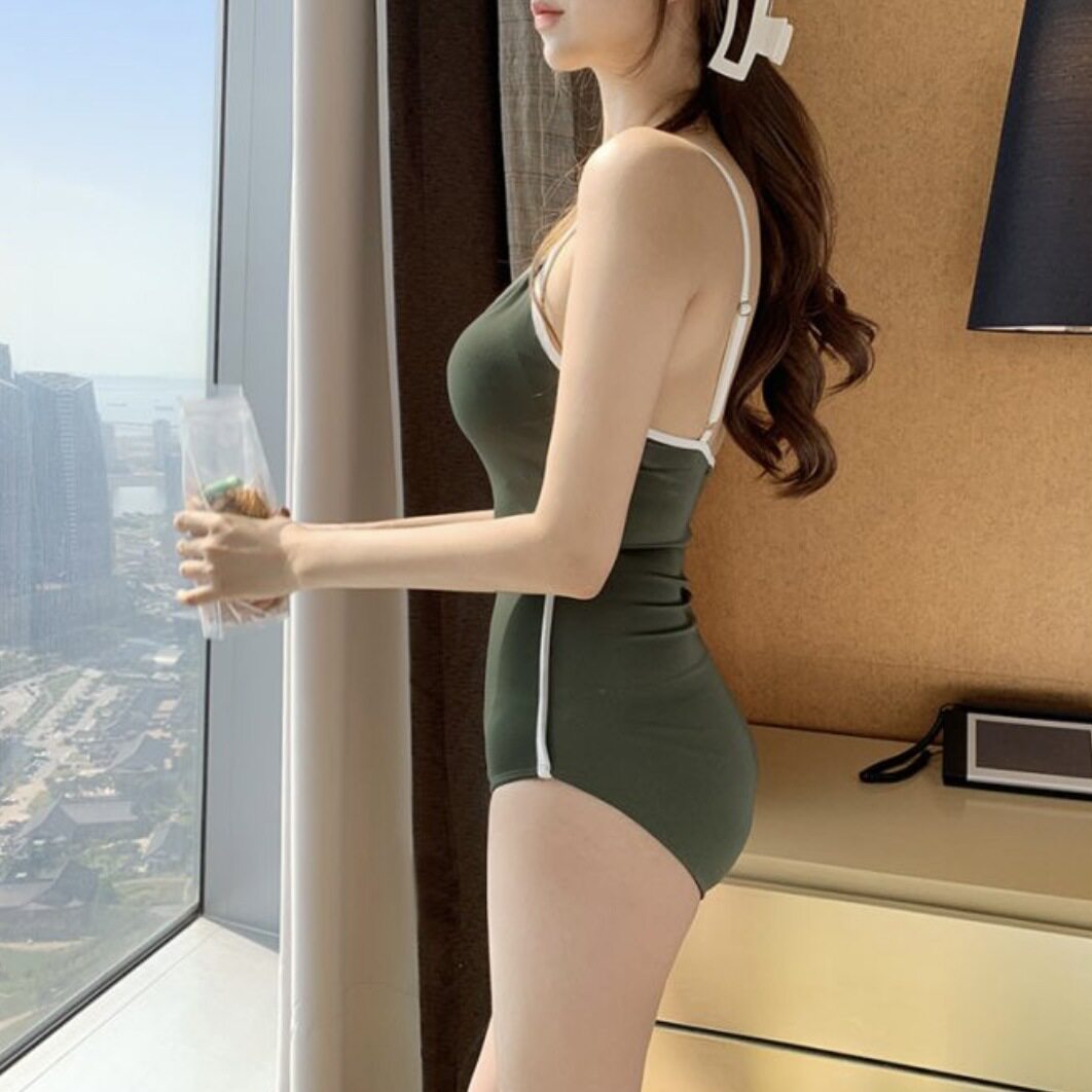 2021 new simple one-piece sleeveless swimsuit female ins style thin Korean version backless hot spring vacation bikini