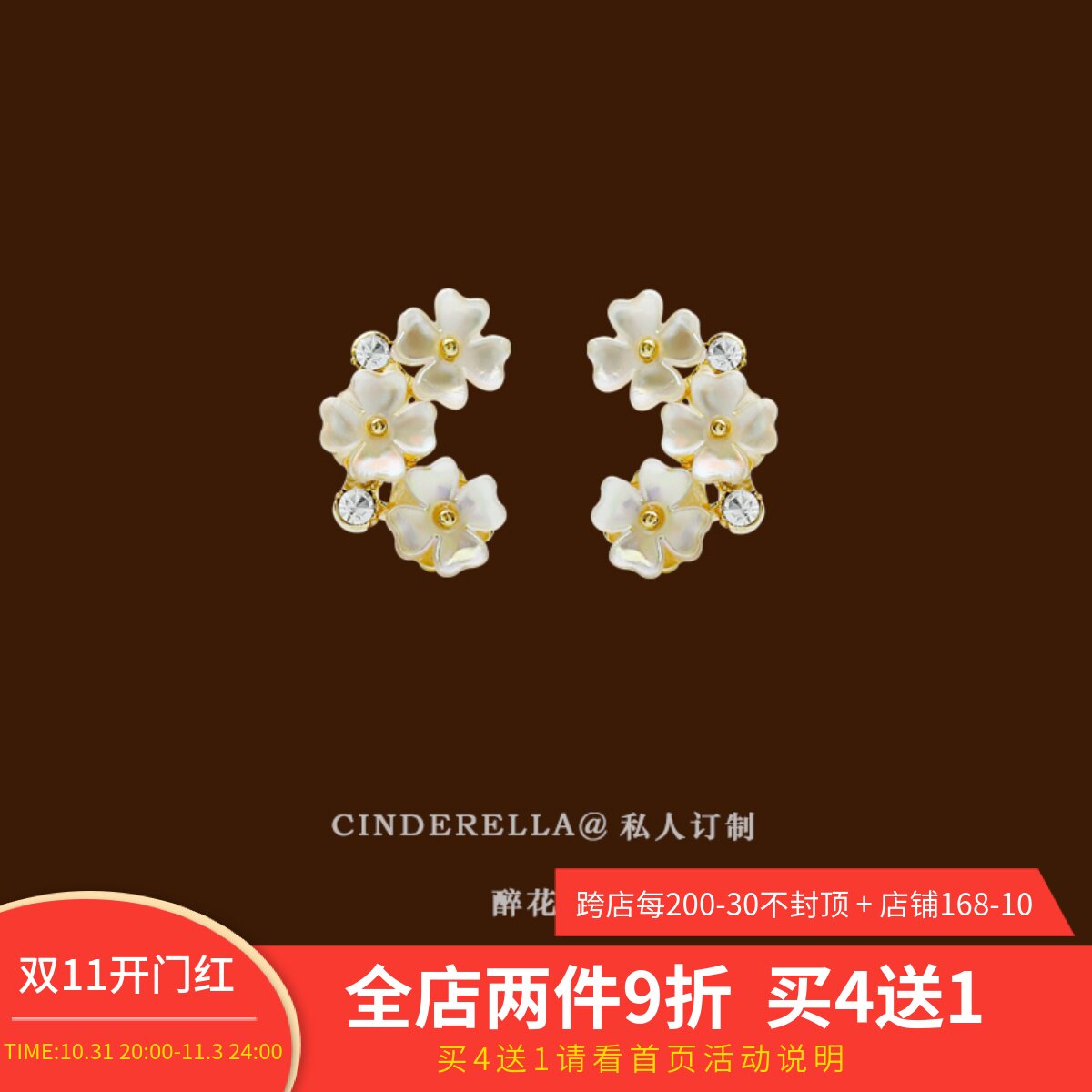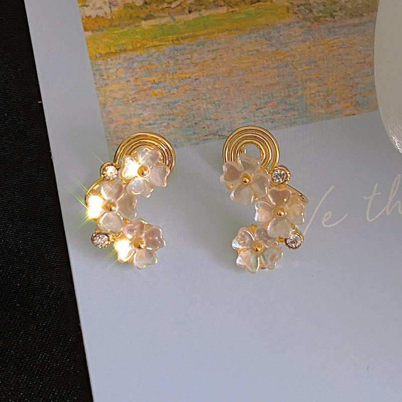 "Story of Cherry Blossoms" Shell Flower Ear Clip Mosquito Coil Plate Without Ear Holes Women's French Retro Temperament High-quality Earrings