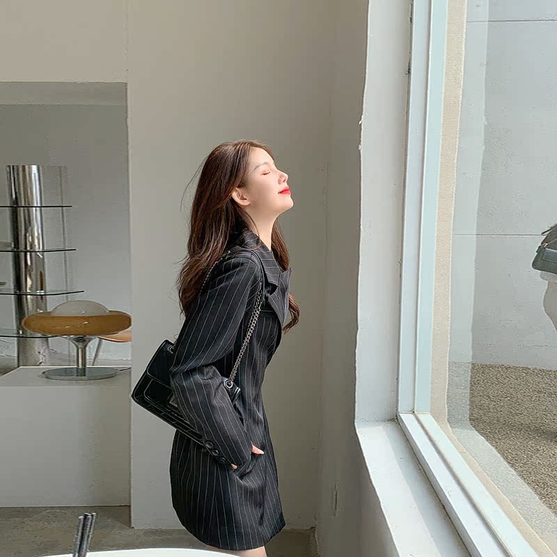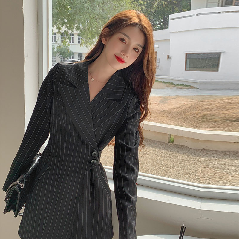 Light and luxurious size suit foreign dress 2022 new spring autumn medium long version advanced sensuo v collar temperament women's clothing jacket