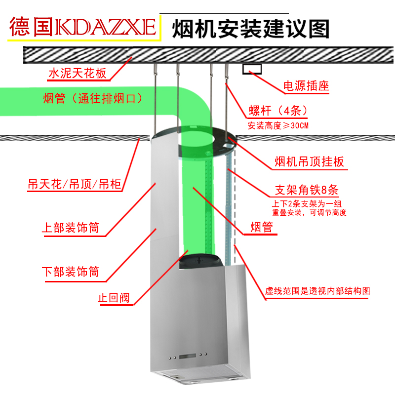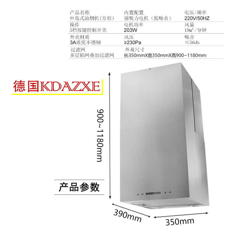 German middle island type range hood square top suction island hanging island type household open kitchen suction range hood