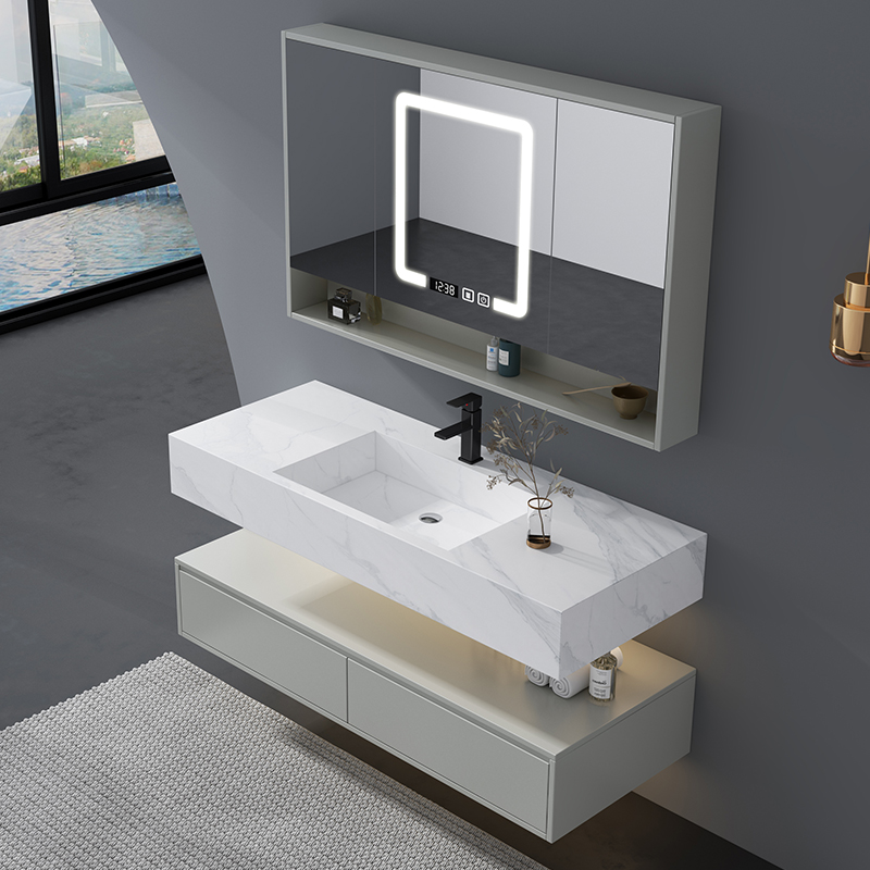 Light Extravagant Rock Board Integrated Basin Bath Cabinet Composition Double Trough Washbasin Modern Minima Dressing Room Hand-wash Face Toiletry Suit Custom