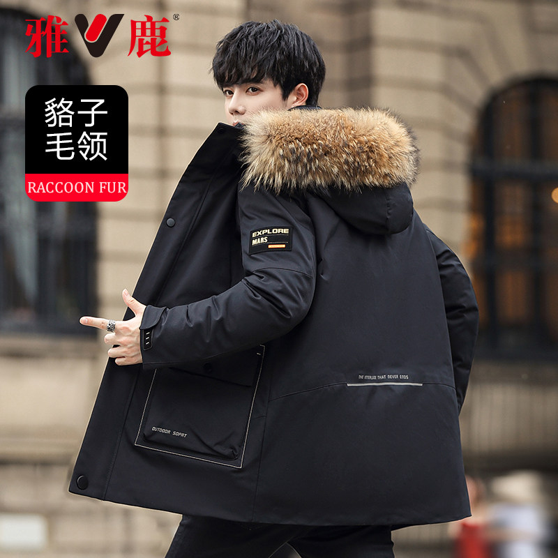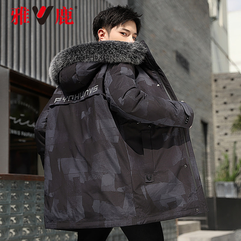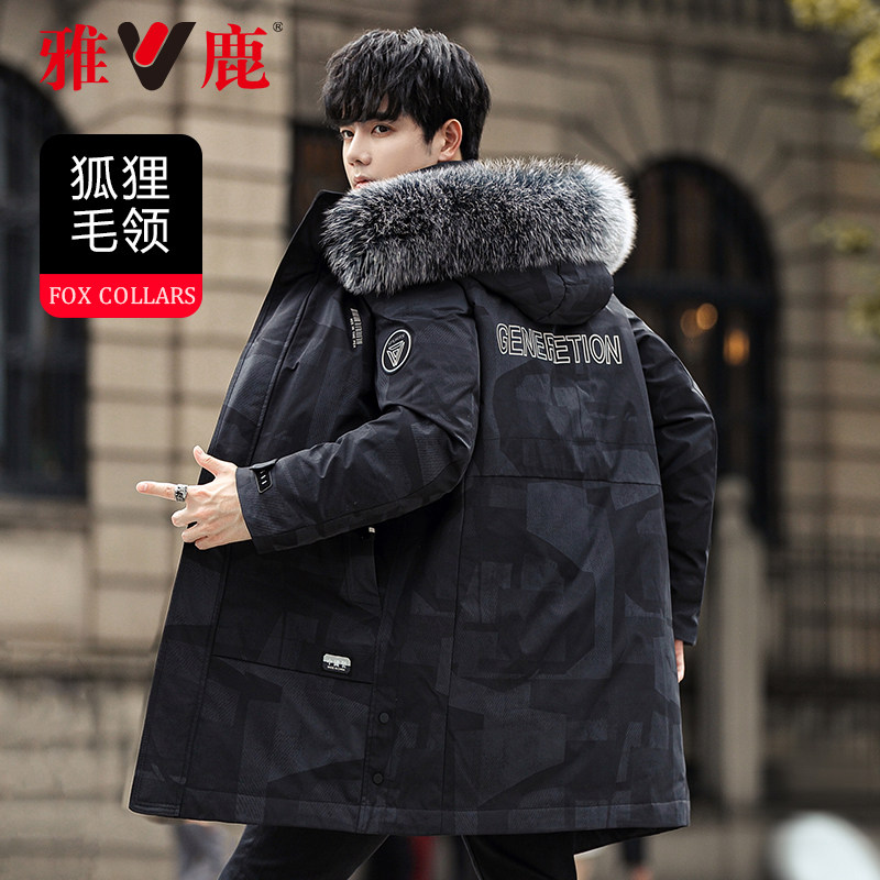 Yalu official Pike down jacket men's medium length 2021 new big hair collar men's thick winter coat D