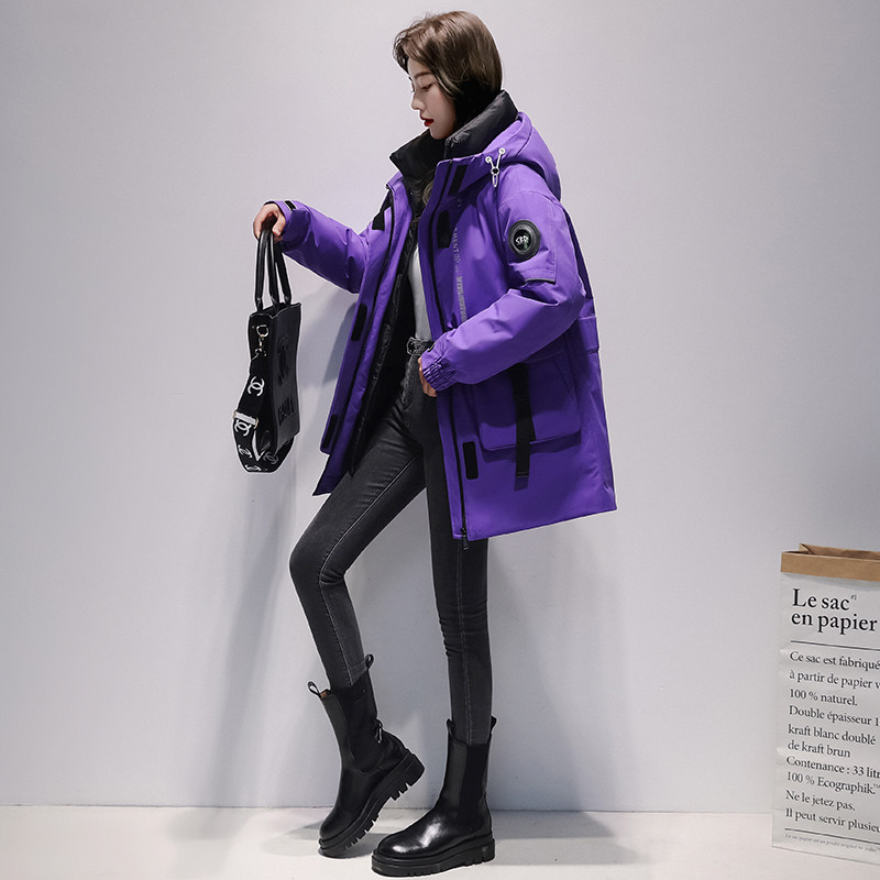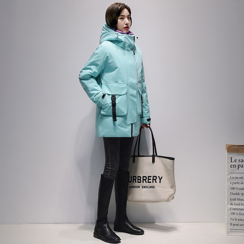 Yose Grey Duck Suede Brand Plume women's medium long version 2021 Winter new thickened warm even hat jacket D