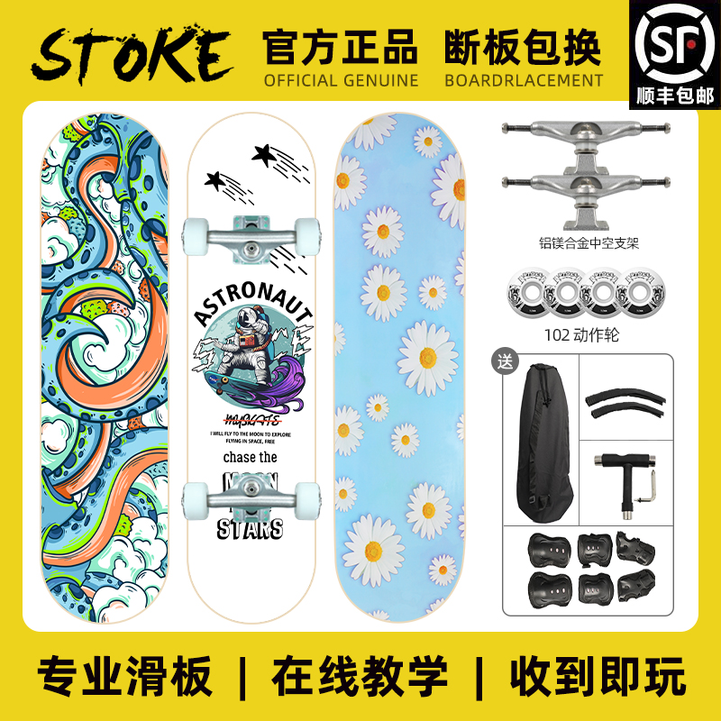 STOKE Skating beginner professional board children teen boys and girls double warp street four rounds of walking short board