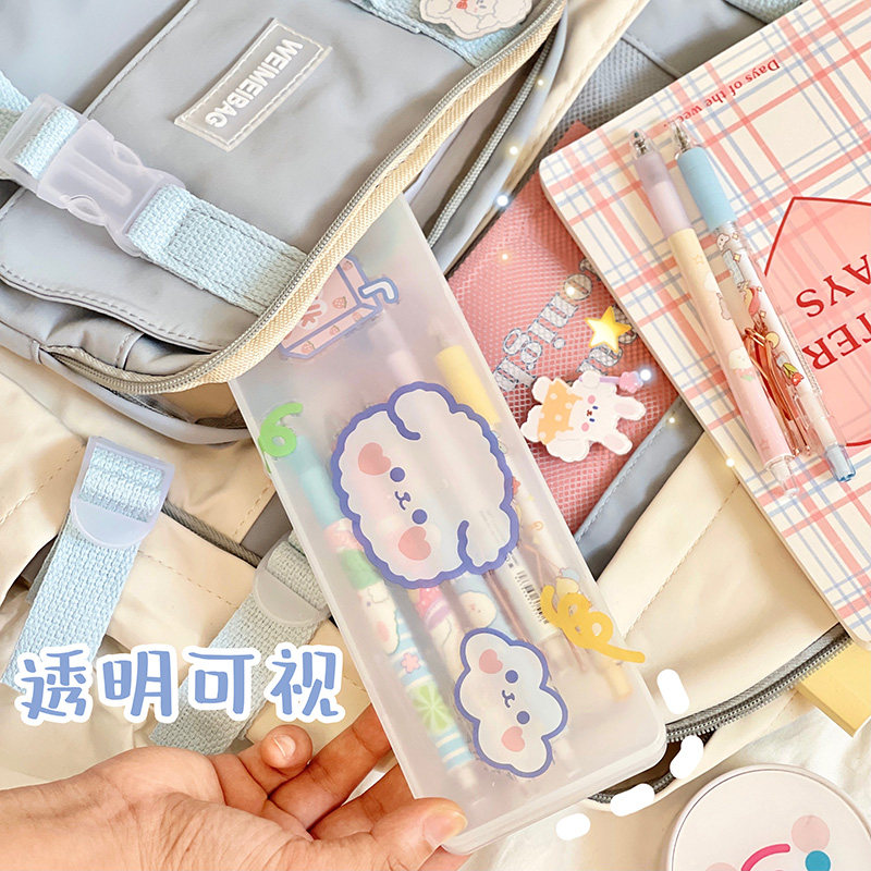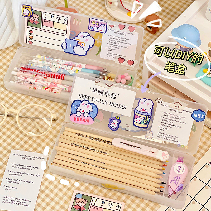Japanese-style simple pencil box junior high school students children's large-capacity double-layer storage box cute pencil case stationery box female