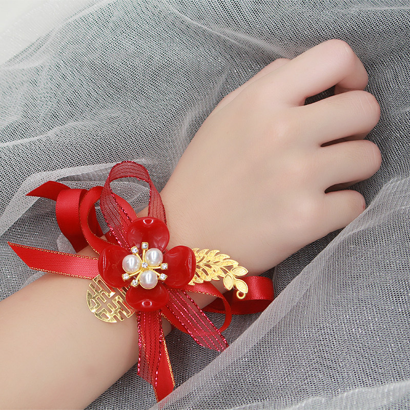 Bridesmaid wrist flower sister hand flower bride hipster bracelet wedding wedding Pearl Korean wedding accessories