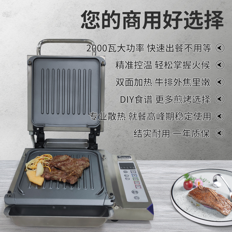 Commercial frying steak machine without adhesive double-sided heating electric pickpocket furnace West Restaurant Equipment Computer Edition Smart pork