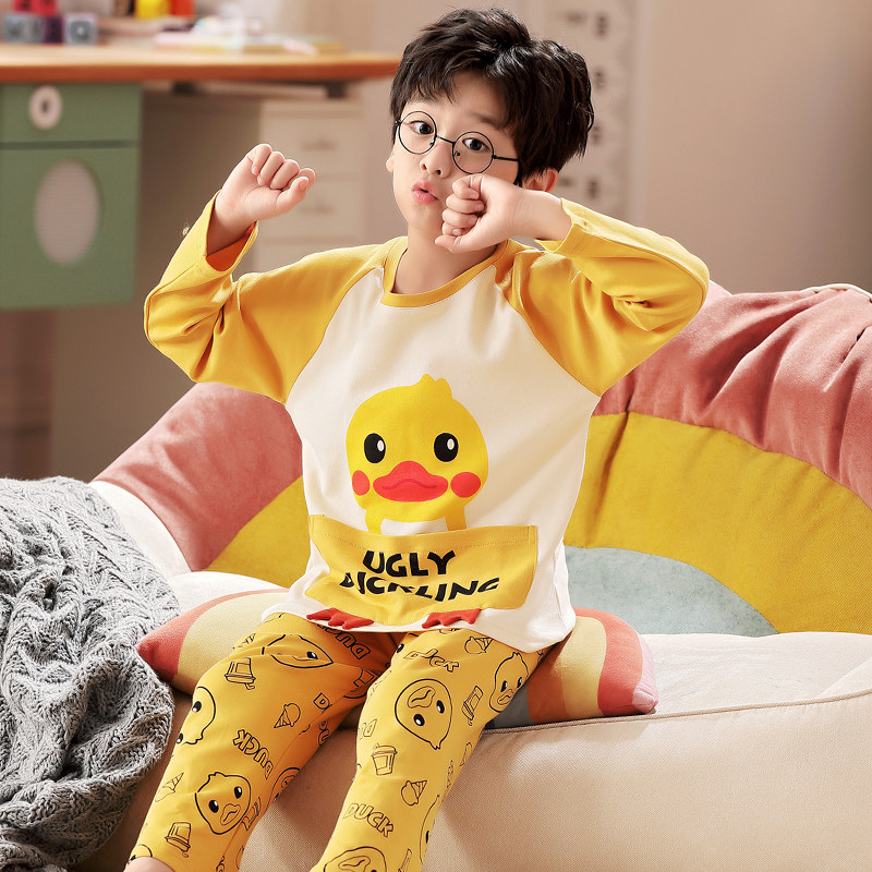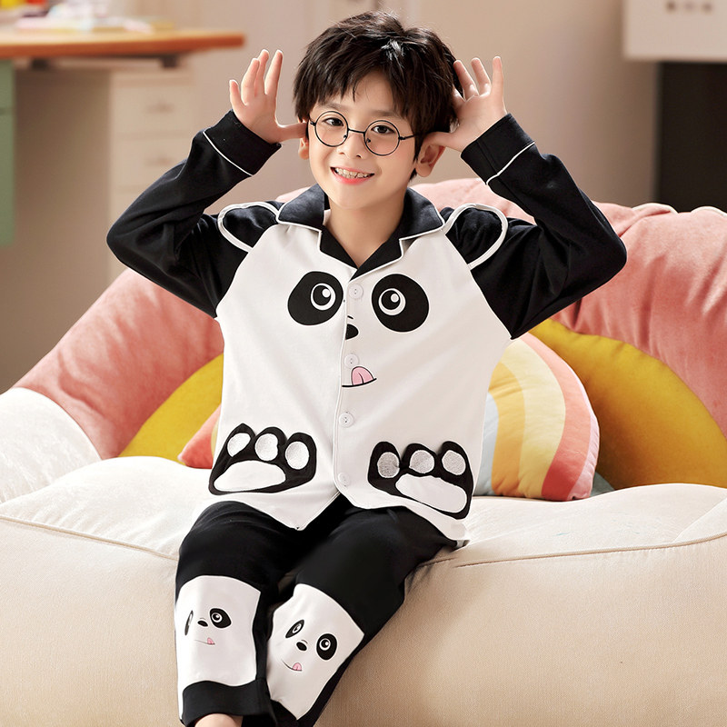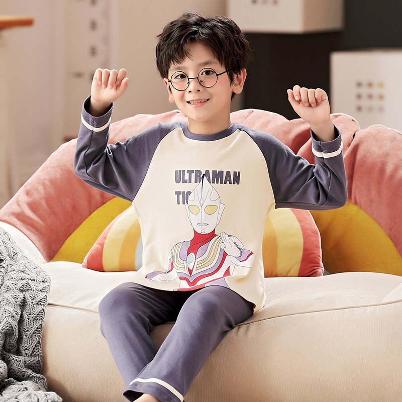 Pure Cotton Children Sleepwear Spring Autumn Summer Boy Baby Long Sleeve Dragon Cat Thin teen CUHK Home Cover Suit
