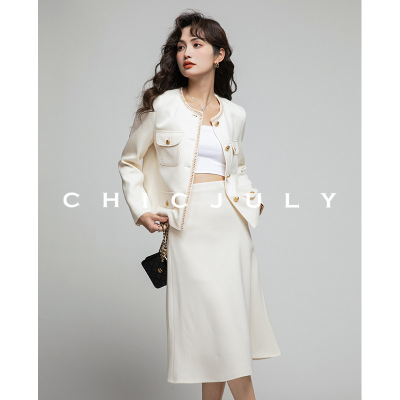CHICJULY White French Acetate Fragrance Suit Women's Summer Coat Advanced Sense Top Two-piece Set for Women