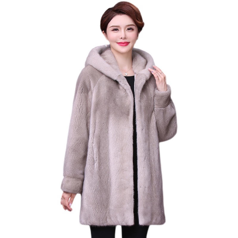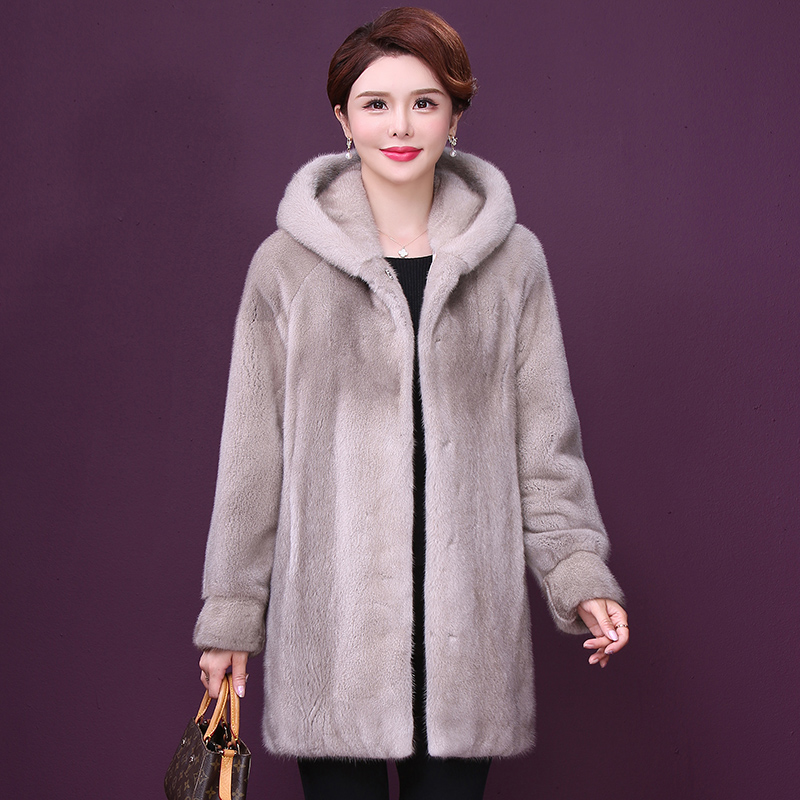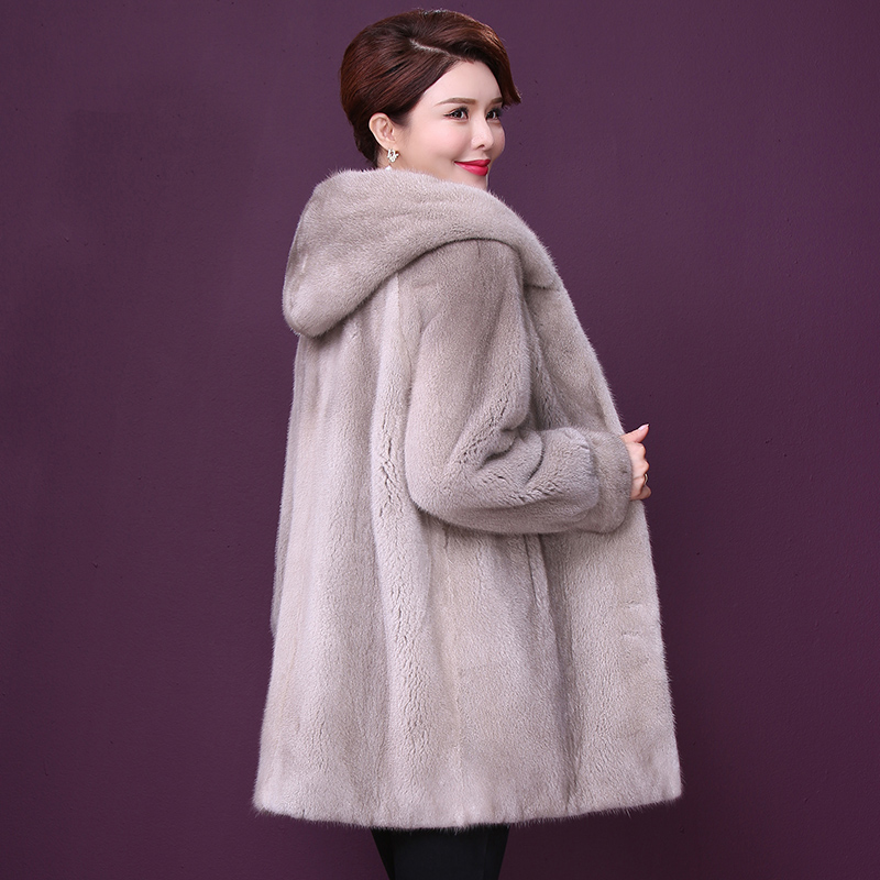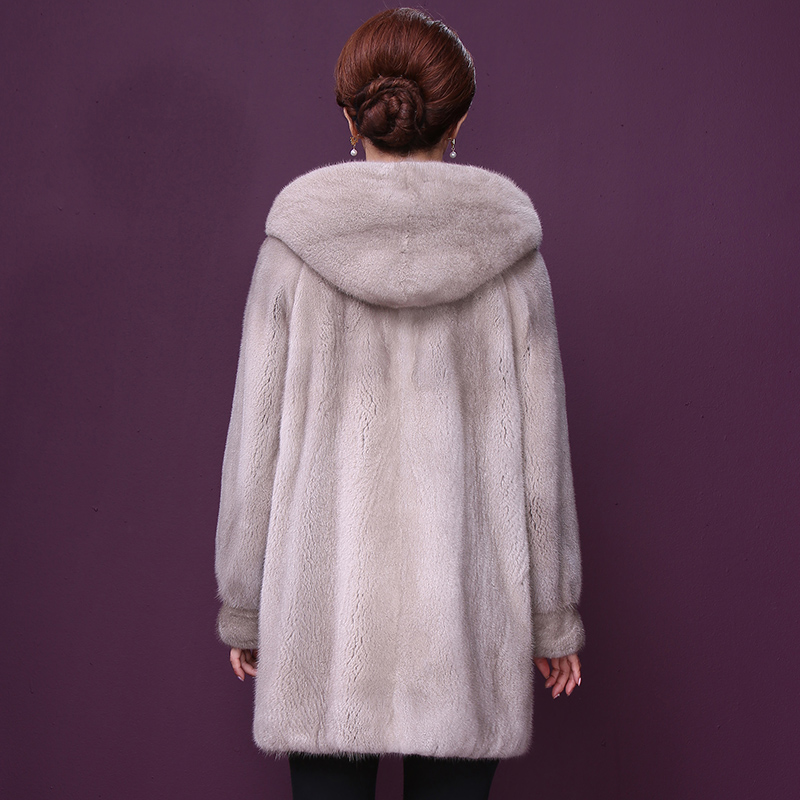 Mink fur coat women's whole mink Haining 2022 new mink fur mid-length winter mink fur coat hooded fur
