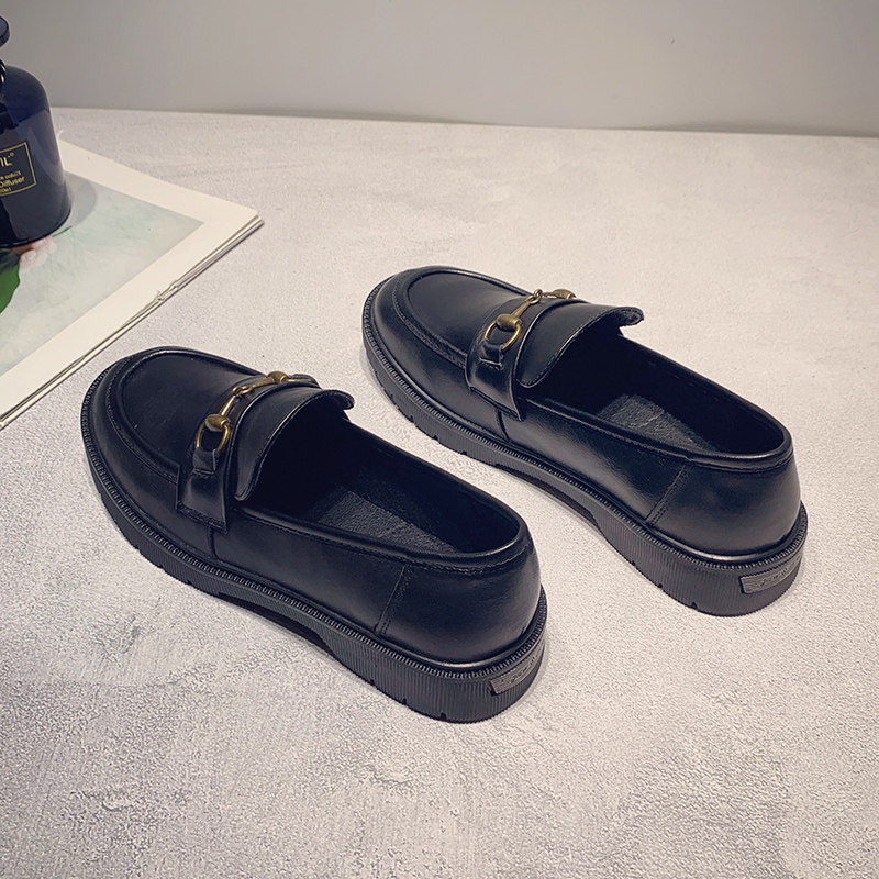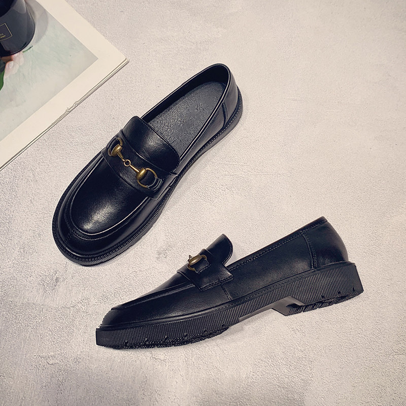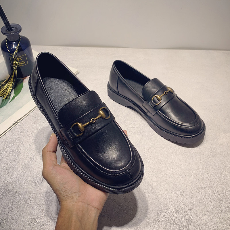 Thick Bottom Lefu Shoes Woman 2022 New genuine leather One foot pedal tennis red flat bottom single shoes Soft bottom Inn wind small leather shoes