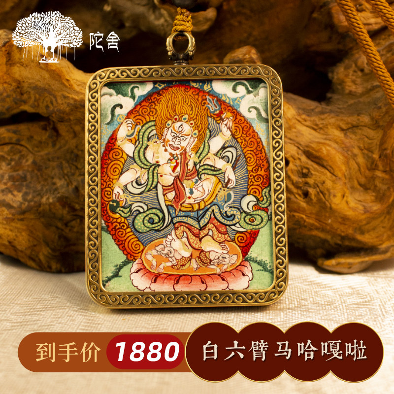 White Six Arm Maha Galla Donka Pendant Gau Box Pure Hand Painted Tibet This Life Buddha's Bodhisattva Treasures Yellow Treasure Yellow Treasure Trombera