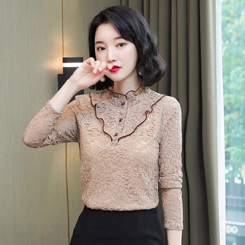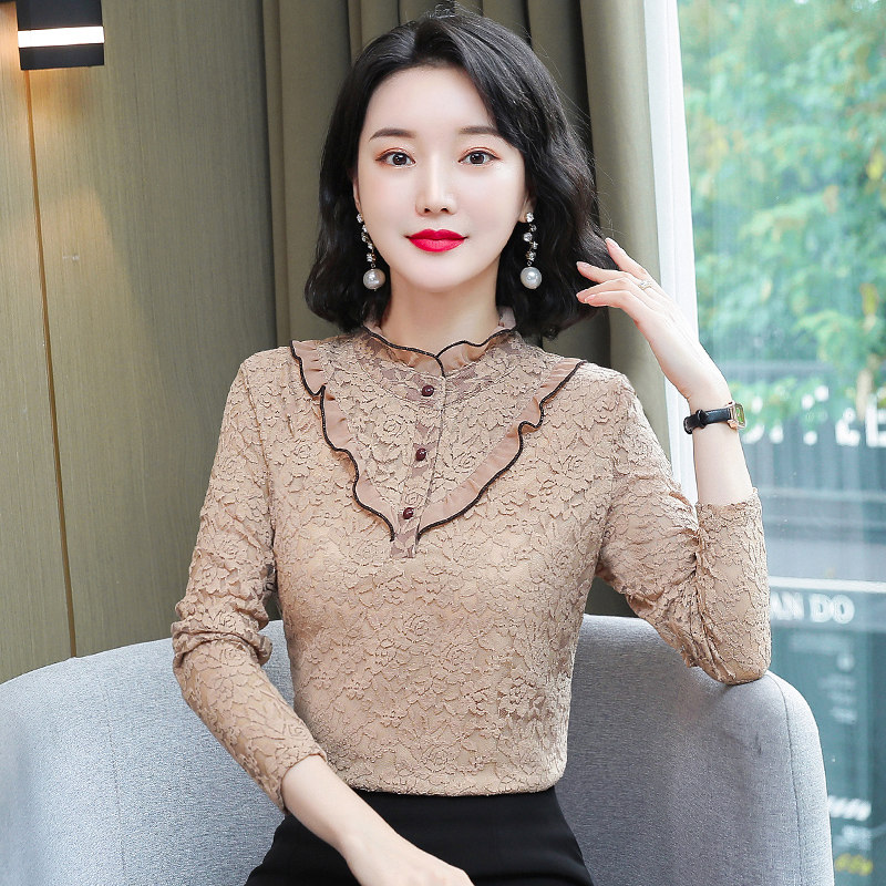 Large size calorie heating clothes woman thickened with velvety single blouse jacket autumn and winter outside wearing tight and semi-high collar lace undershirt