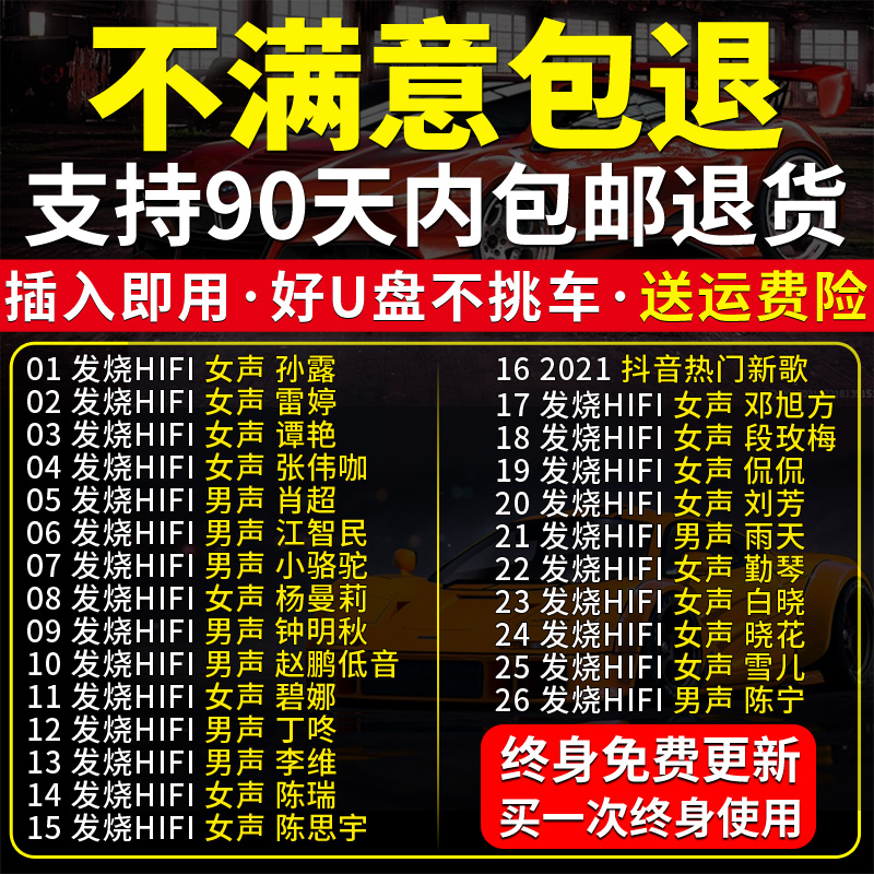 Free shipping insurance Any car can be used Distortion-free music HiFi fever music ① Package 32 G U disk without distortion sound quality (send HiFi fever 1650 songs)