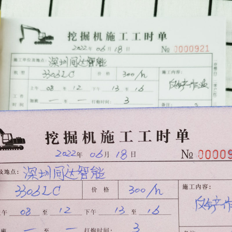 Receipt Customization Document Customization Form Customization Factory Outlet Contract Customization Printing Customization Various Types Document Customization ***** Excavator Hours List Two-page Single Special
