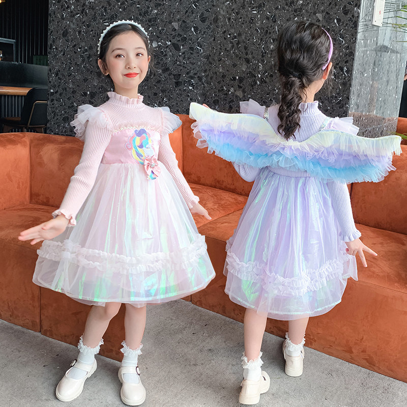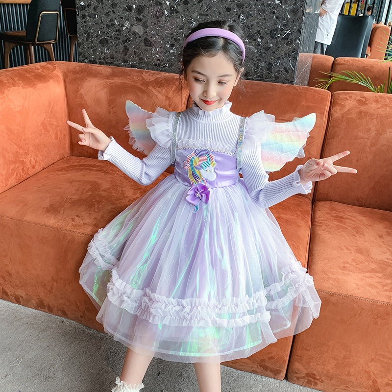 Girl Wings Ocean Dress 2022 New Little Girl Skirt Mesh Yarn Pony Rainbow Pony Purple Child Fluffy Skirt