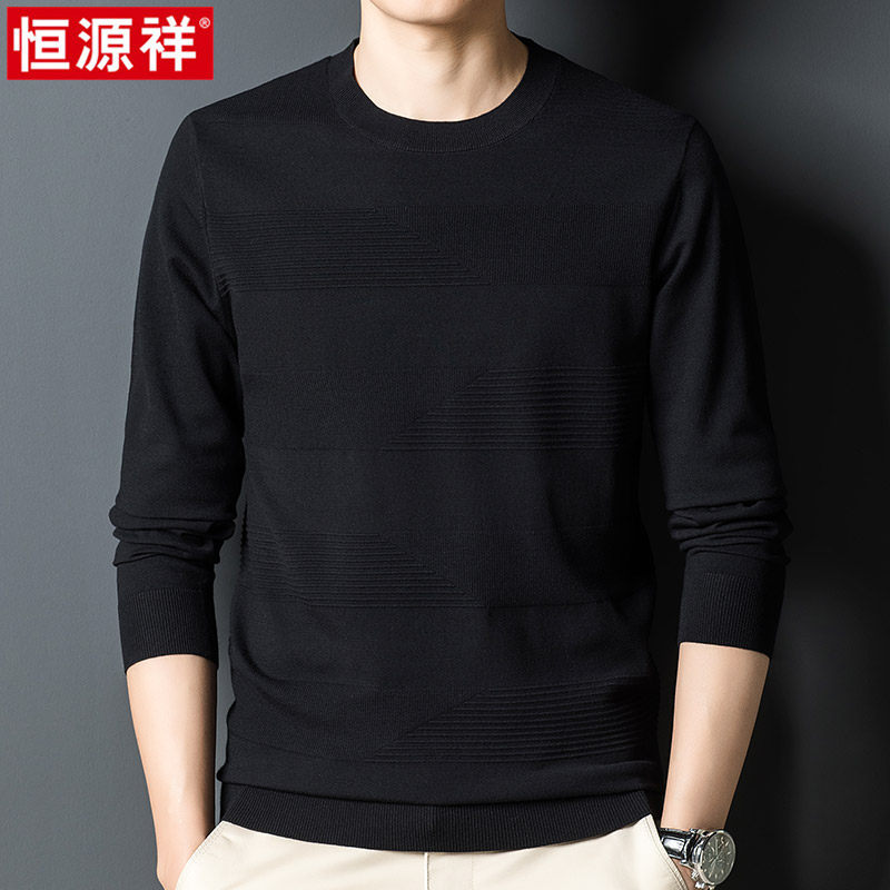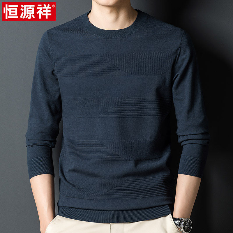Hengyuan Xiang Spring Autumn Season New Men's Sweater Round Collar Casual Thin blouse Middle-aged Dad Clothes Knit Undershirt