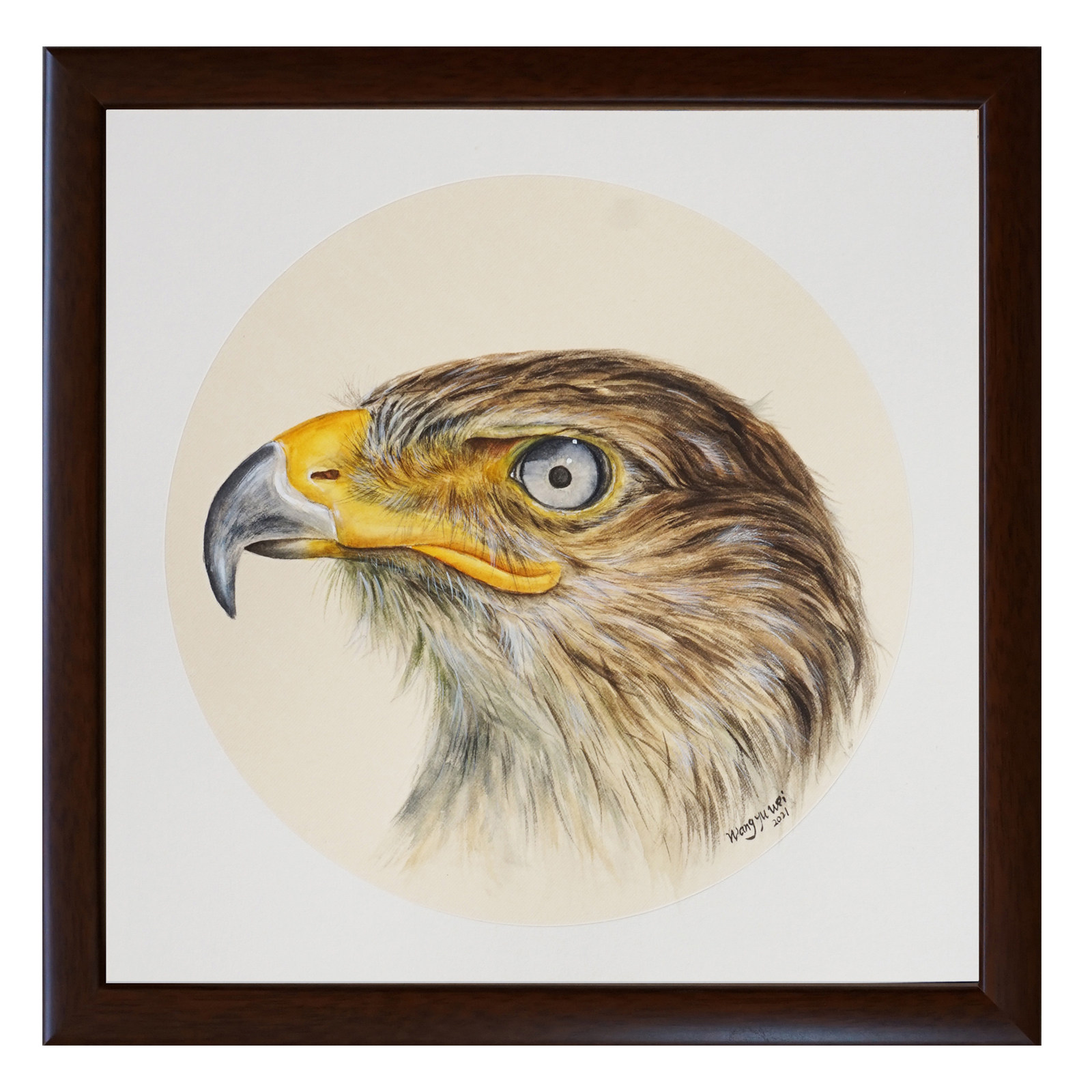 Send solid wood mounting Wang Yuwei watercolor "Xiongan" Living room Bedroom Bedroom Decoration Collection Pure Hand-painted Paper this watercolor