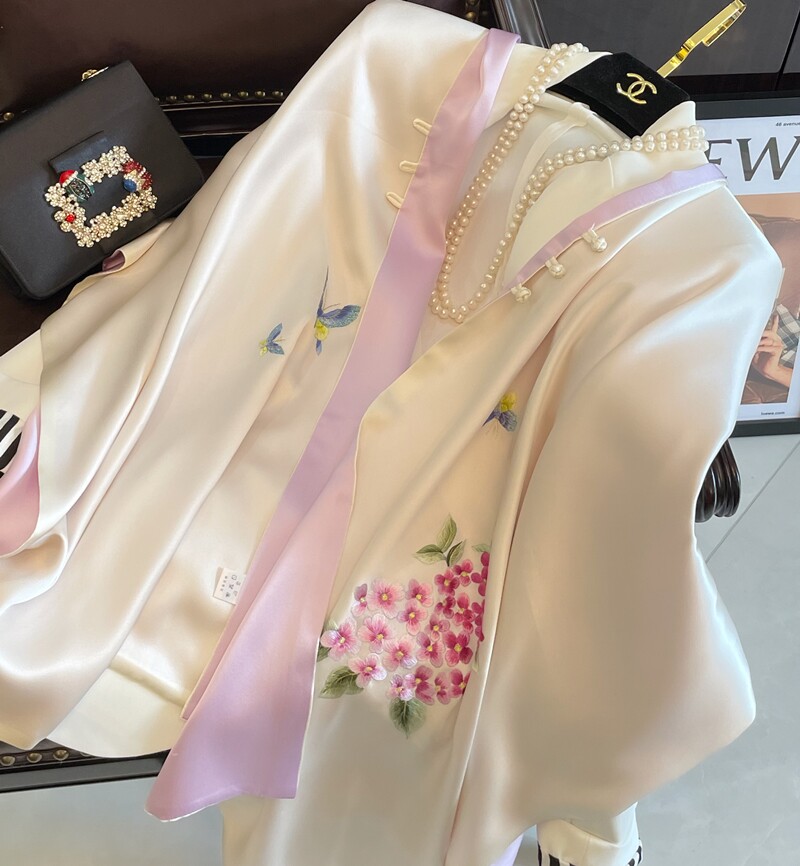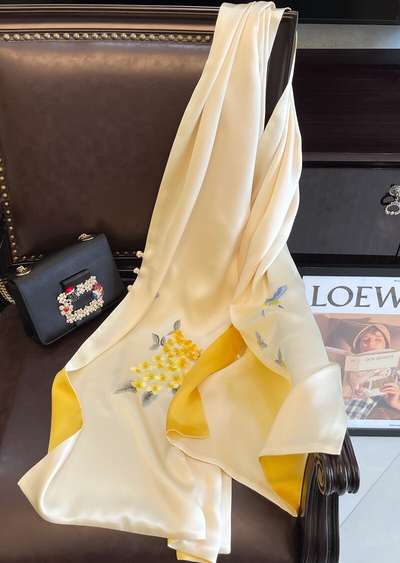 Silk buckle shawl women's hand-embroidered embroidery cheongsam scarf wedding mother dress mulberry silk long silk scarf