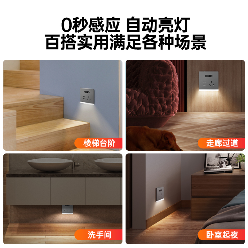 Bull foot lamp human body induction light switch is always on 86 type night lighting small night light bedroom stair aisle light