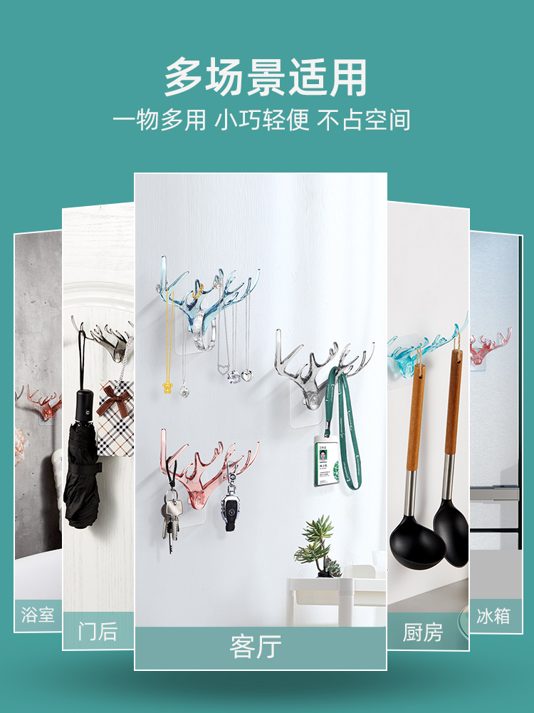 (Nordic Style) Creative Deer Corner Key Transparent Hook Strong no-mark adhesive multifunction wall-mounted adhesive