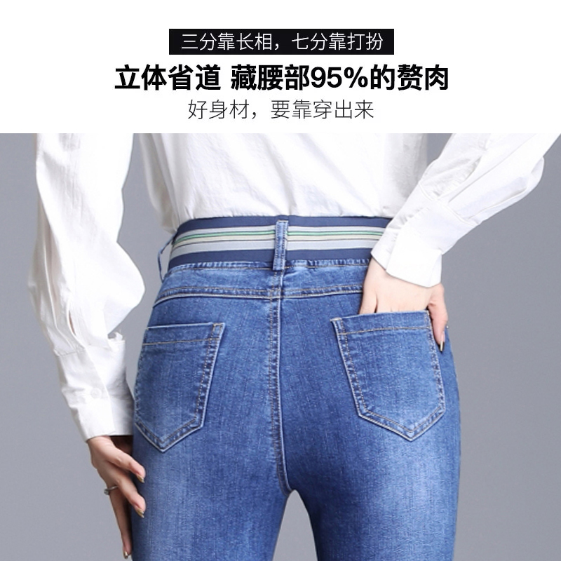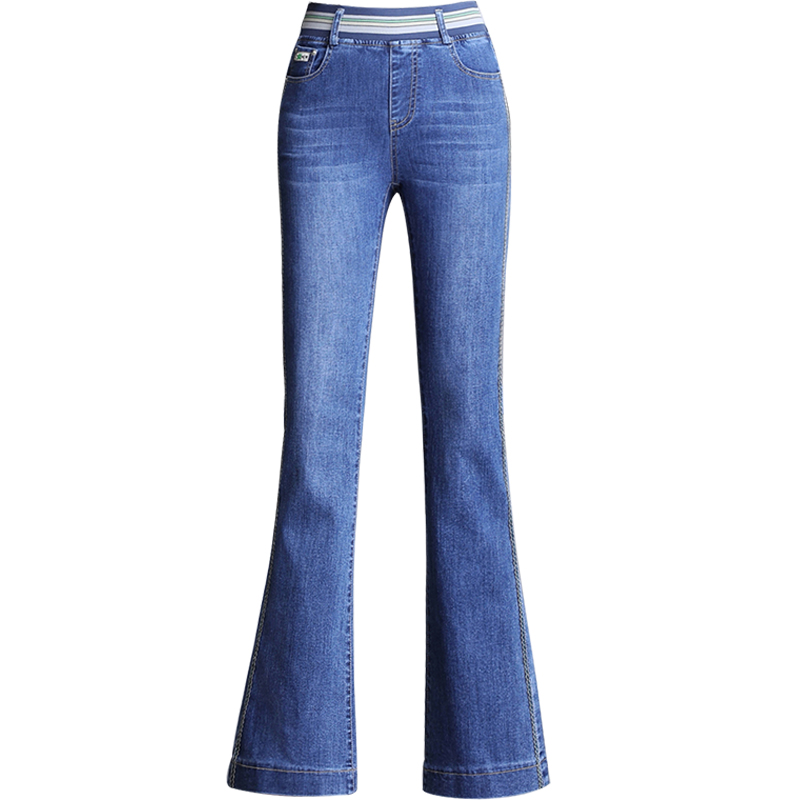 Light luxury elastic waist temperament denim micro-flared pants women's spring and autumn new Korean version of the pendant women's pants loose flared pants